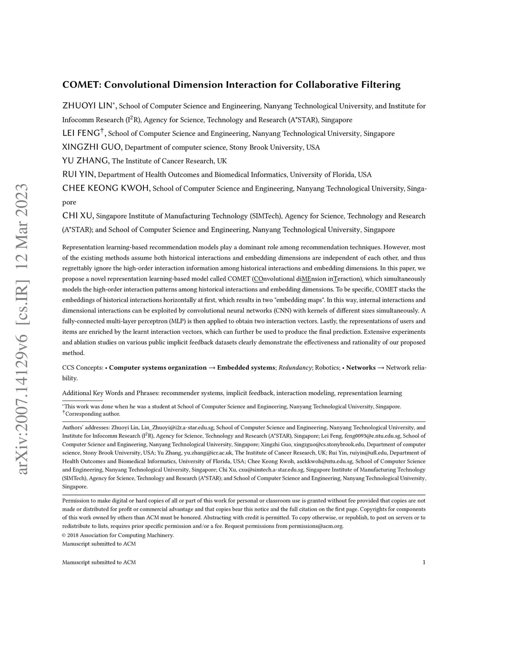 COMET: Convolutional Dimension Interaction for Collaborative Filtering
