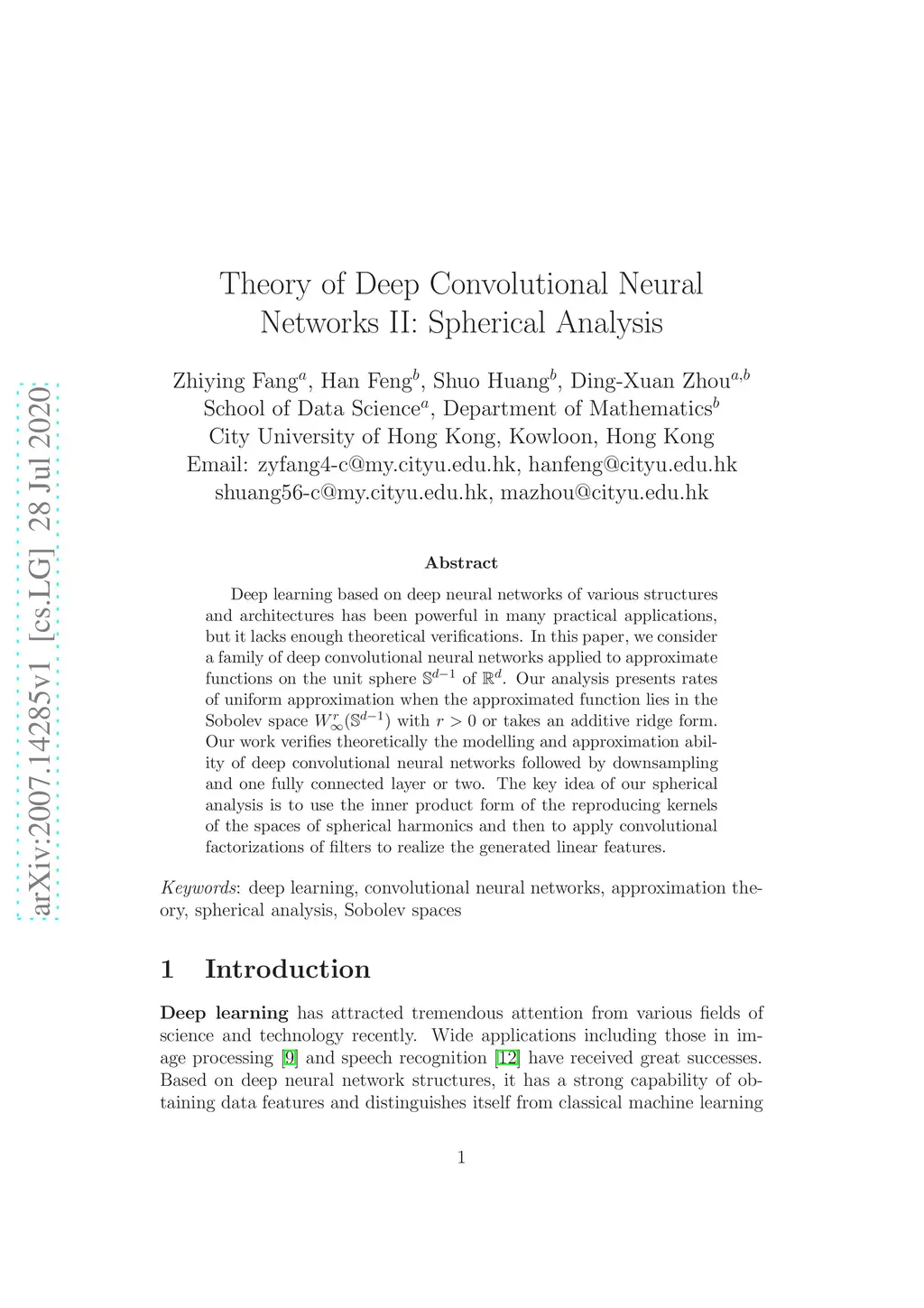 Theory of Deep Convolutional Neural Networks II: Spherical Analysis