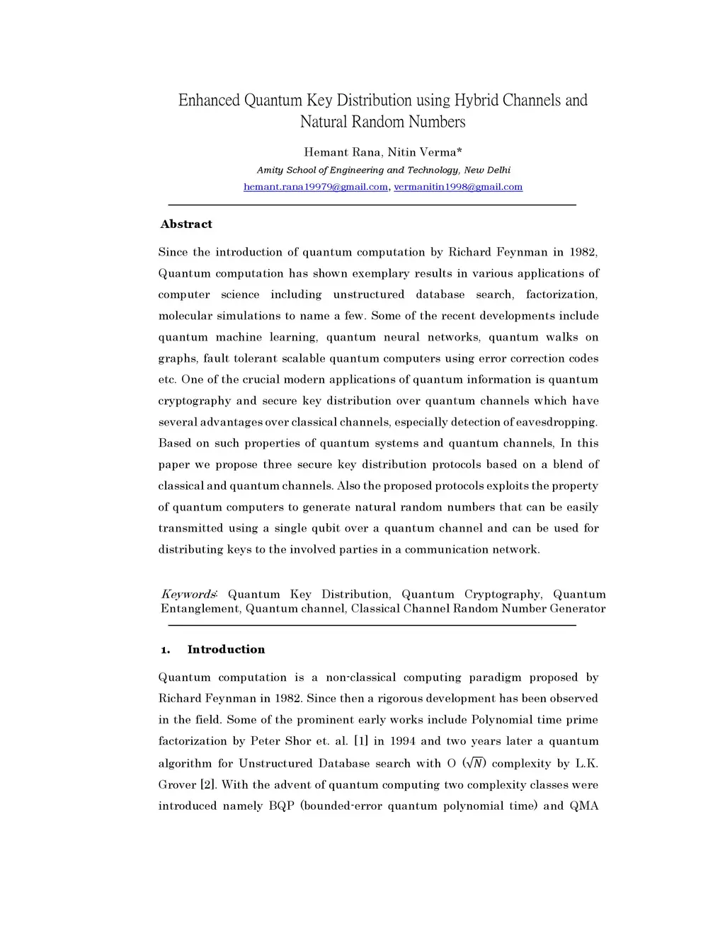 Since the introduction of quantum computation by Richard Feynman in 1982, Quantum computation has shown exemplary results in various applications of computer science including unstructured database search, factorization, molecular simulations to name a few. Some of the recent developments include quantum machine learning, quantum neural networks, quantum walks on graphs, fault tolerant scalable quantum computers using error correction codes etc. One of the crucial modern applications of quantum information is quantum cryptography and secure key distribution over quantum channels which have several advantages over classical channels, especially detection of eavesdropping. Based on such properties of quantum systems and quantum channels, In this paper we propose three secure key distribution protocols based on a blend of classical and quantum channels. Also the proposed protocols exploits the property of quantum computers to generate natural random numbers that can be easily transmitted using a single qubit over a quantum channel and can be used for distributing keys to the involved parties in a communication network.