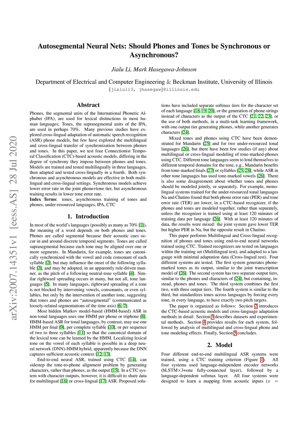 Phones, the segmental units of the International Phonetic Alphabet (IPA), are used for lexical distinctions in most human languages; Tones, the suprasegmental units of the IPA, are used in perhaps 70%. Many previous studies have explored cross-lingual adaptation of automatic speech recognition (ASR) phone models, but few have explored the multilingual and cross-lingual transfer of synchronization between phones and tones. In this paper, we test four Connectionist Temporal Classification (CTC)-based acoustic models, differing in the degree of synchrony they impose between phones and tones. Models are trained and tested multilingually in three languages, then adapted and tested cross-lingually in a fourth. Both synchronous and asynchronous models are effective in both multilingual and cross-lingual settings. Synchronous models achieve lower error rate in the joint phone+tone tier, but asynchronous training results in lower tone error rate.
