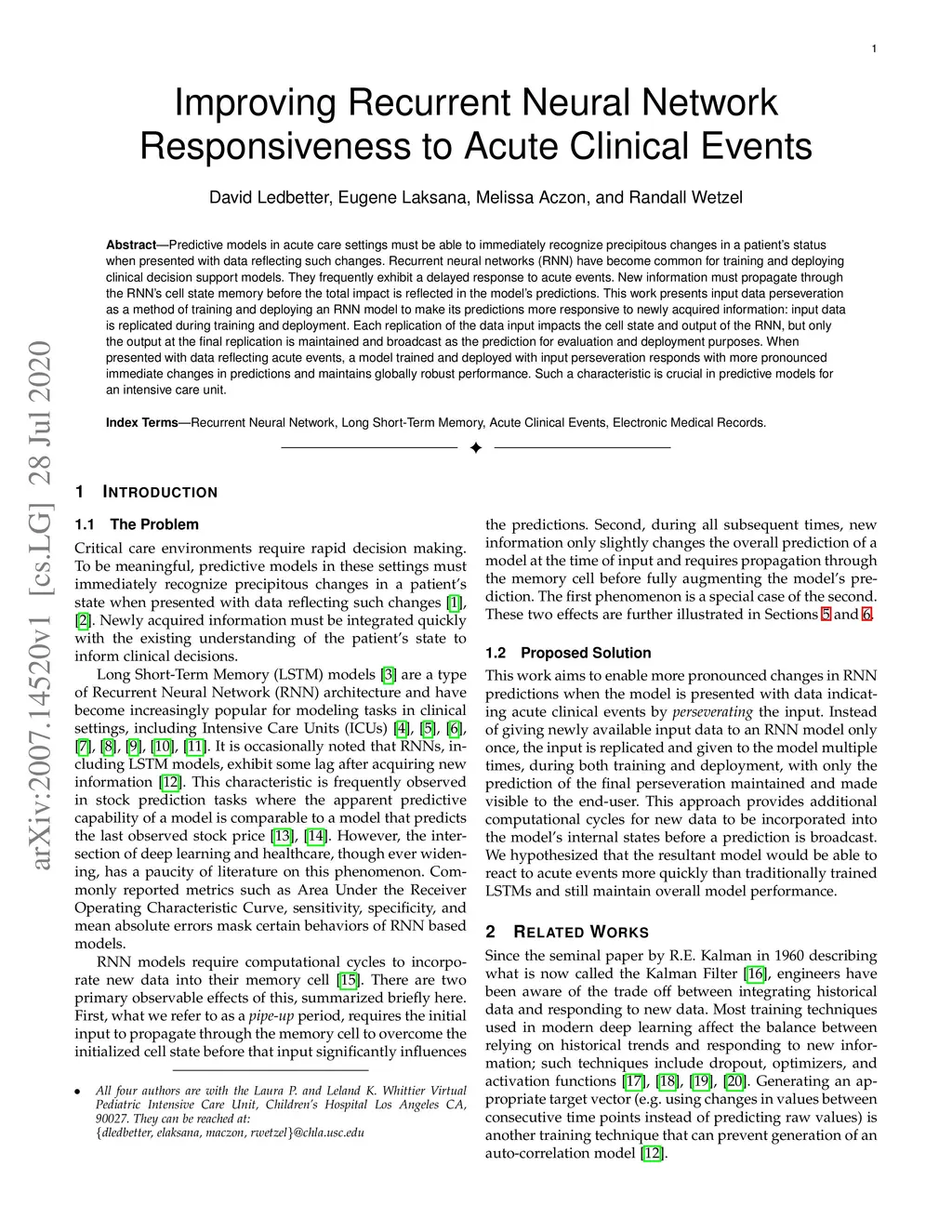 Improving Recurrent Neural Network Responsiveness to Acute Clinical