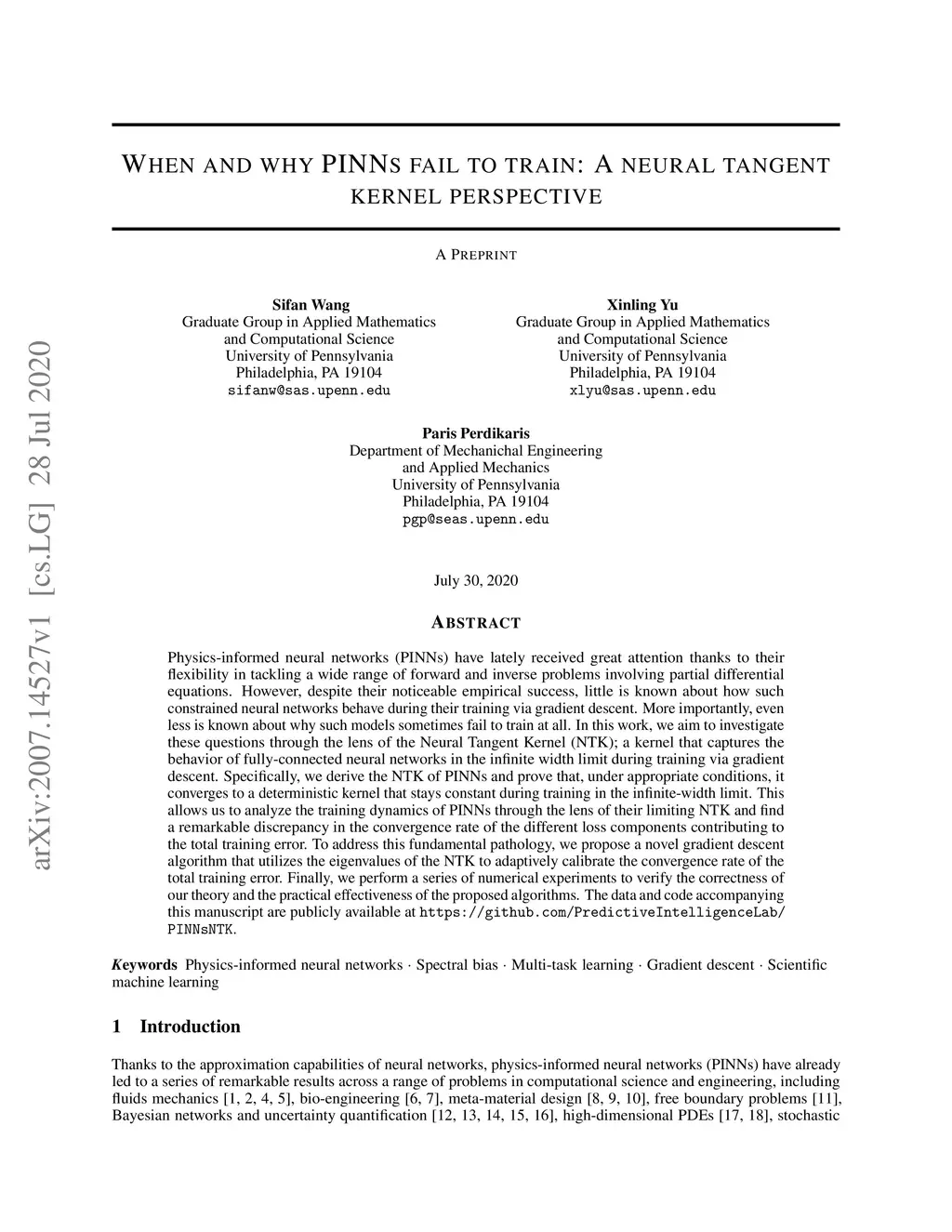 When and why PINNs fail to train: A neural tangent kernel perspective