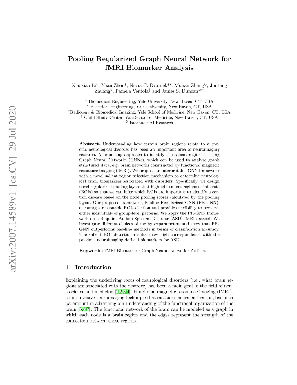 Pooling Regularized Graph Neural Network for fMRI Biomarker Analysis
