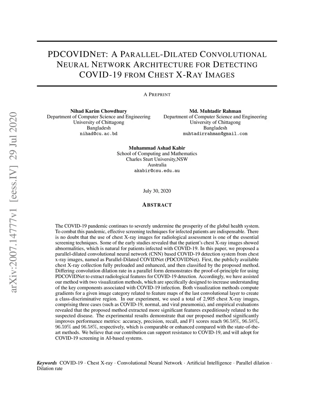 PDCOVIDNet: A Parallel-Dilated Convolutional Neural Network Architecture