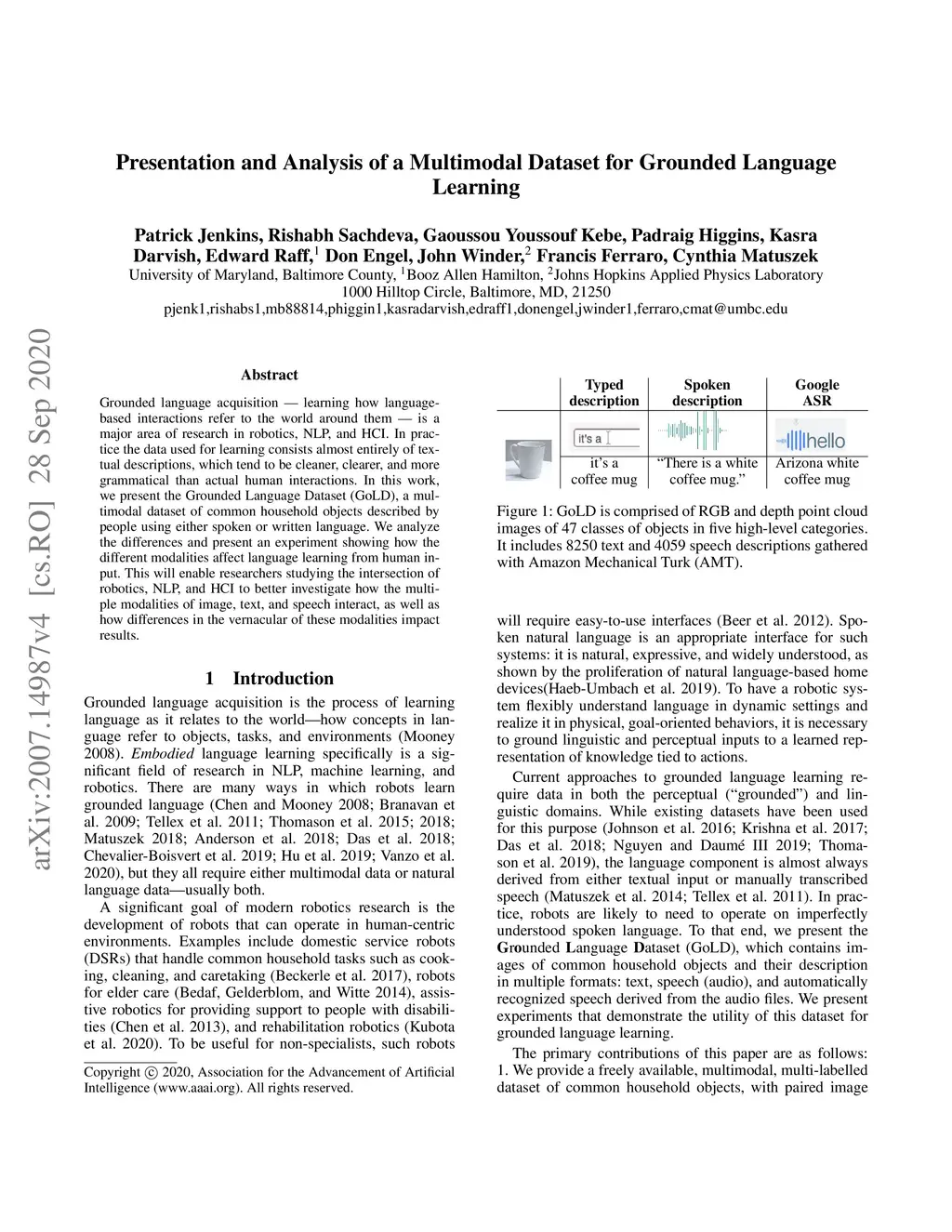 Presentation and Analysis of a Multimodal Dataset for Grounded Language