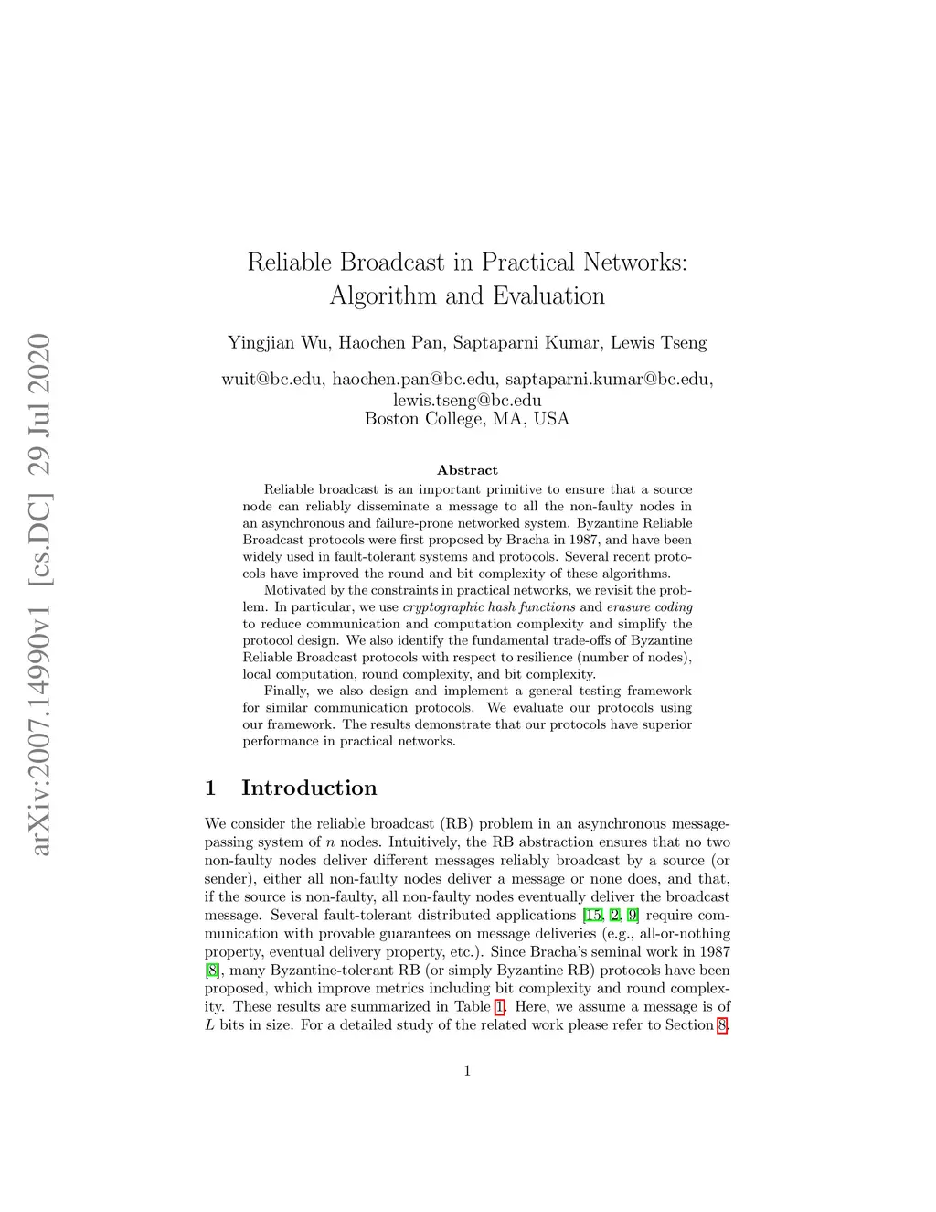 Reliable Broadcast in Practical Networks: Algorithm and Evaluation