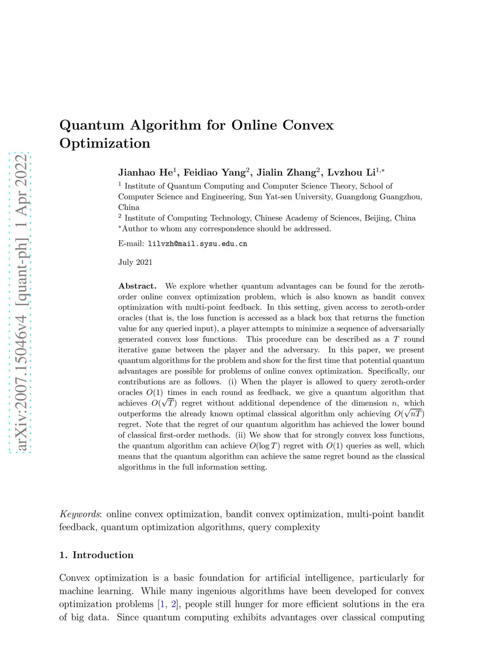 Quantum Algorithm for Online Convex Optimization