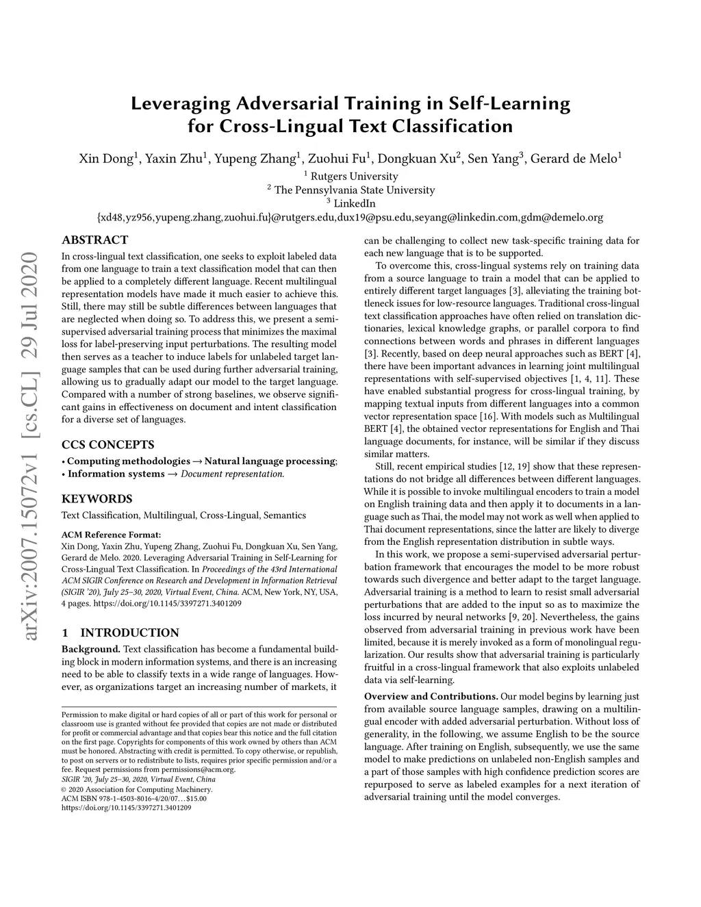Leveraging Adversarial Training in Self-Learning for Cross-Lingual Text