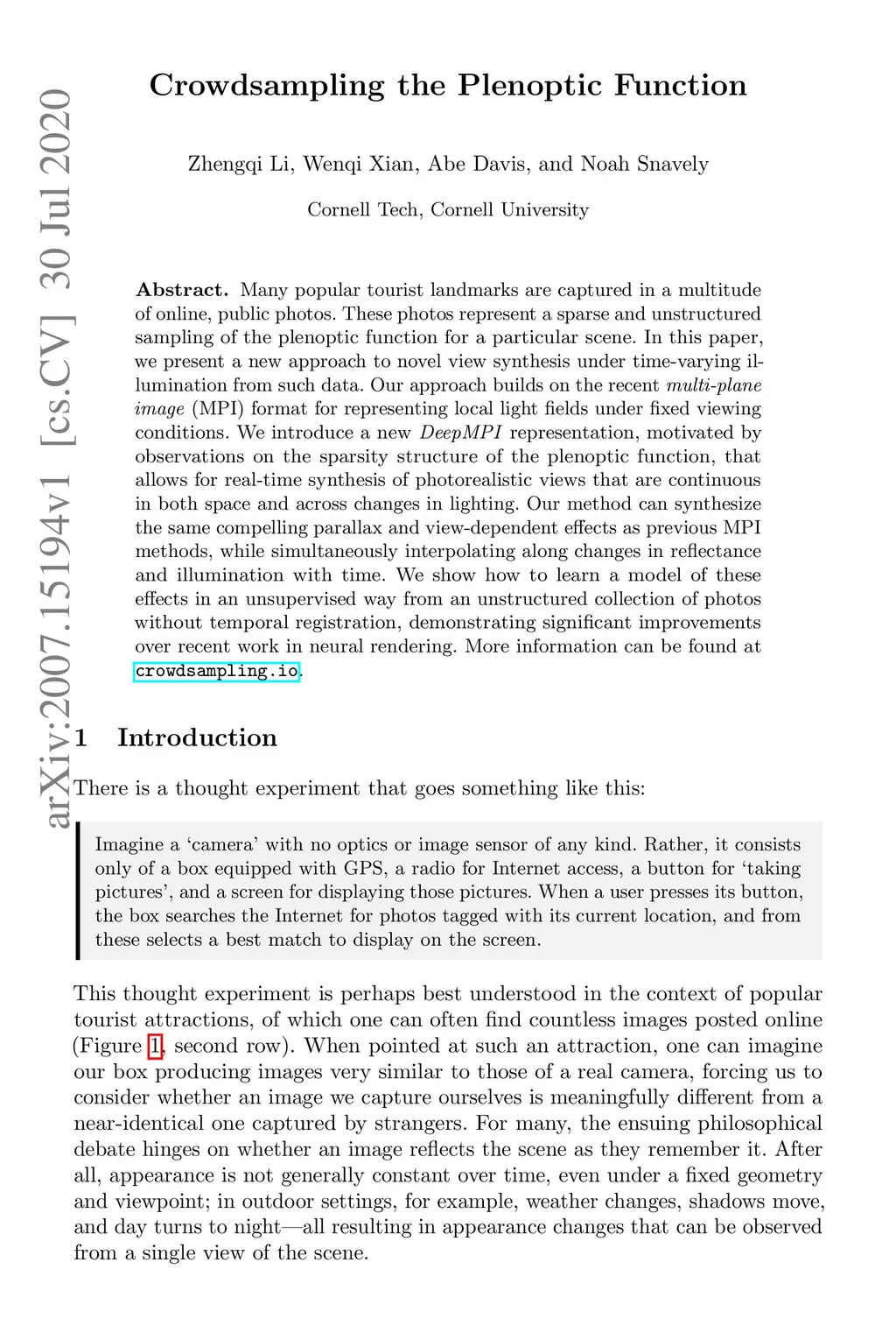 Many popular tourist landmarks are captured in a multitude of online, public photos. These photos represent a sparse and unstructured sampling of the plenoptic function for a particular scene. In this paper,we present a new approach to novel view synthesis under time-varying illumination from such data. Our approach builds on the recent multi-plane image (MPI) format for representing local light fields under fixed viewing conditions. We introduce a new DeepMPI representation, motivated by observations on the sparsity structure of the plenoptic function, that allows for real-time synthesis of photorealistic views that are continuous in both space and across changes in lighting. Our method can synthesize the same compelling parallax and view-dependent effects as previous MPI methods, while simultaneously interpolating along changes in reflectance and illumination with time. We show how to learn a model of these effects in an unsupervised way from an unstructured collection of photos without temporal registration, demonstrating significant improvements over recent work in neural rendering. More information can be found crowdsampling.io.