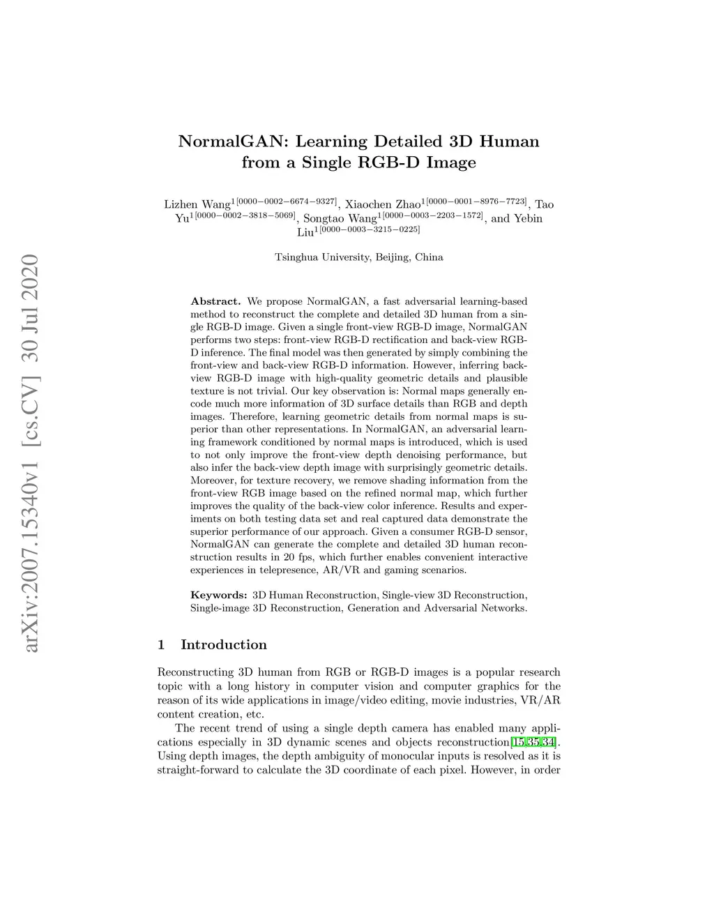 NormalGAN: Learning Detailed 3D Human from a Single RGB-D Image
