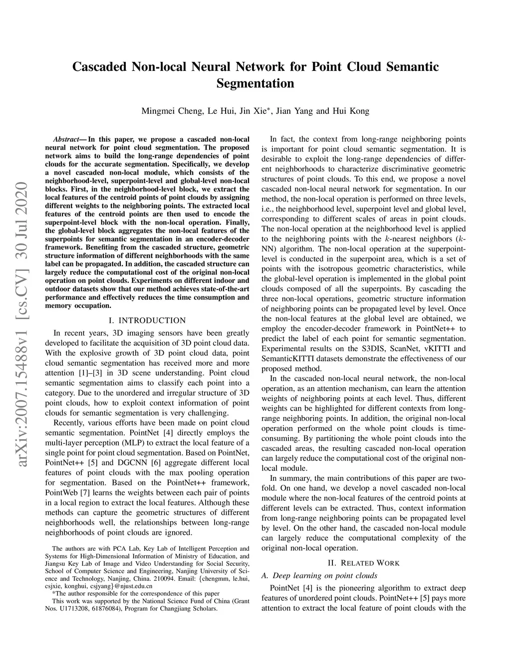Cascaded Non-local Neural Network for Point Cloud Semantic Segmentation