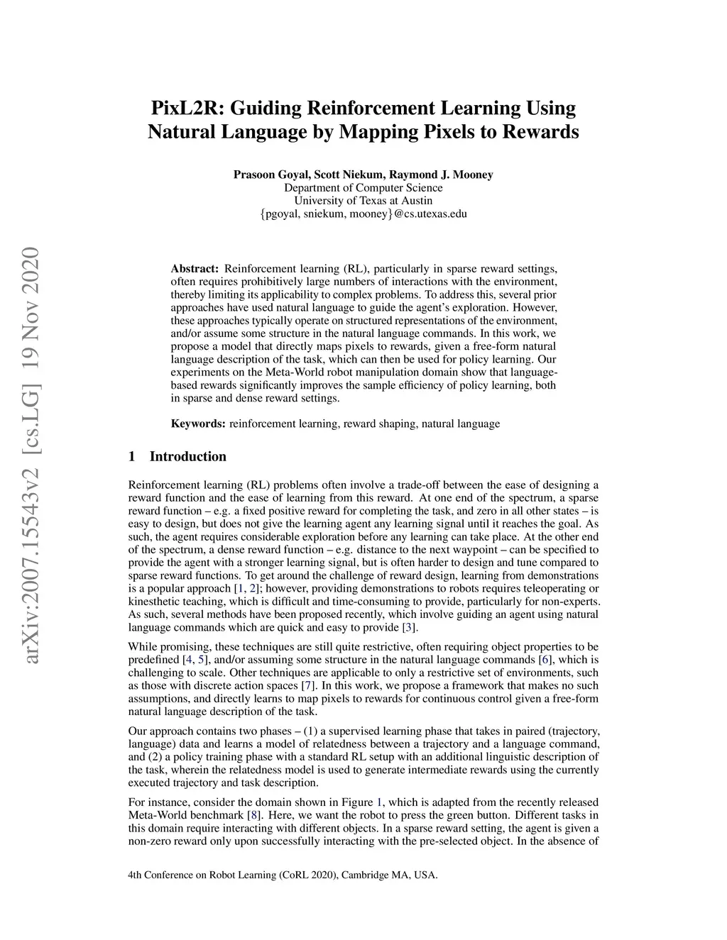 PixL2R: Guiding Reinforcement Learning Using Natural Language by Mapping