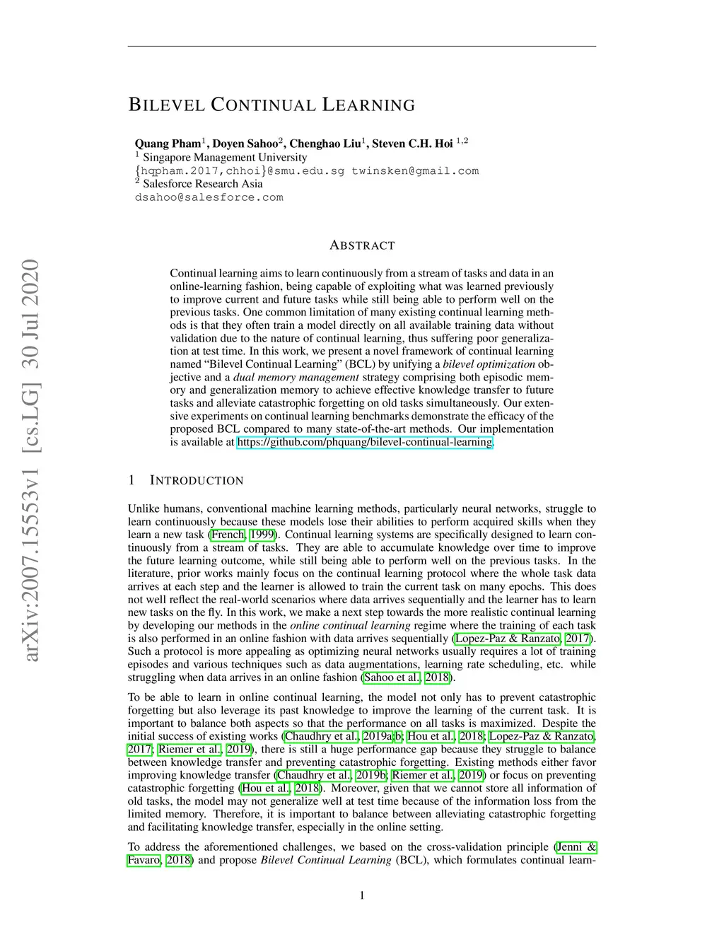 Bilevel Continual Learning