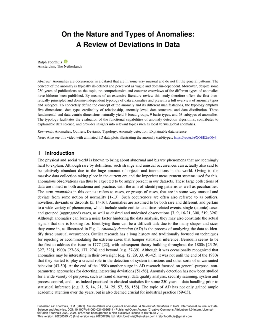 On the Nature and Types of Anomalies: A Review of Deviations in Data