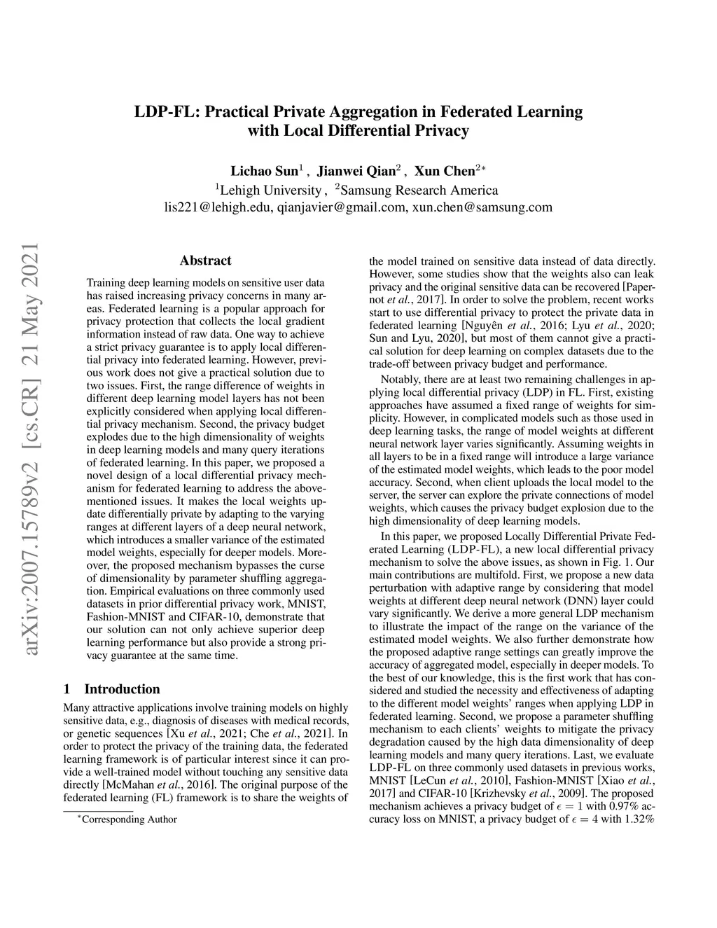 LDP-FL: Practical Private Aggregation in Federated Learning with Local