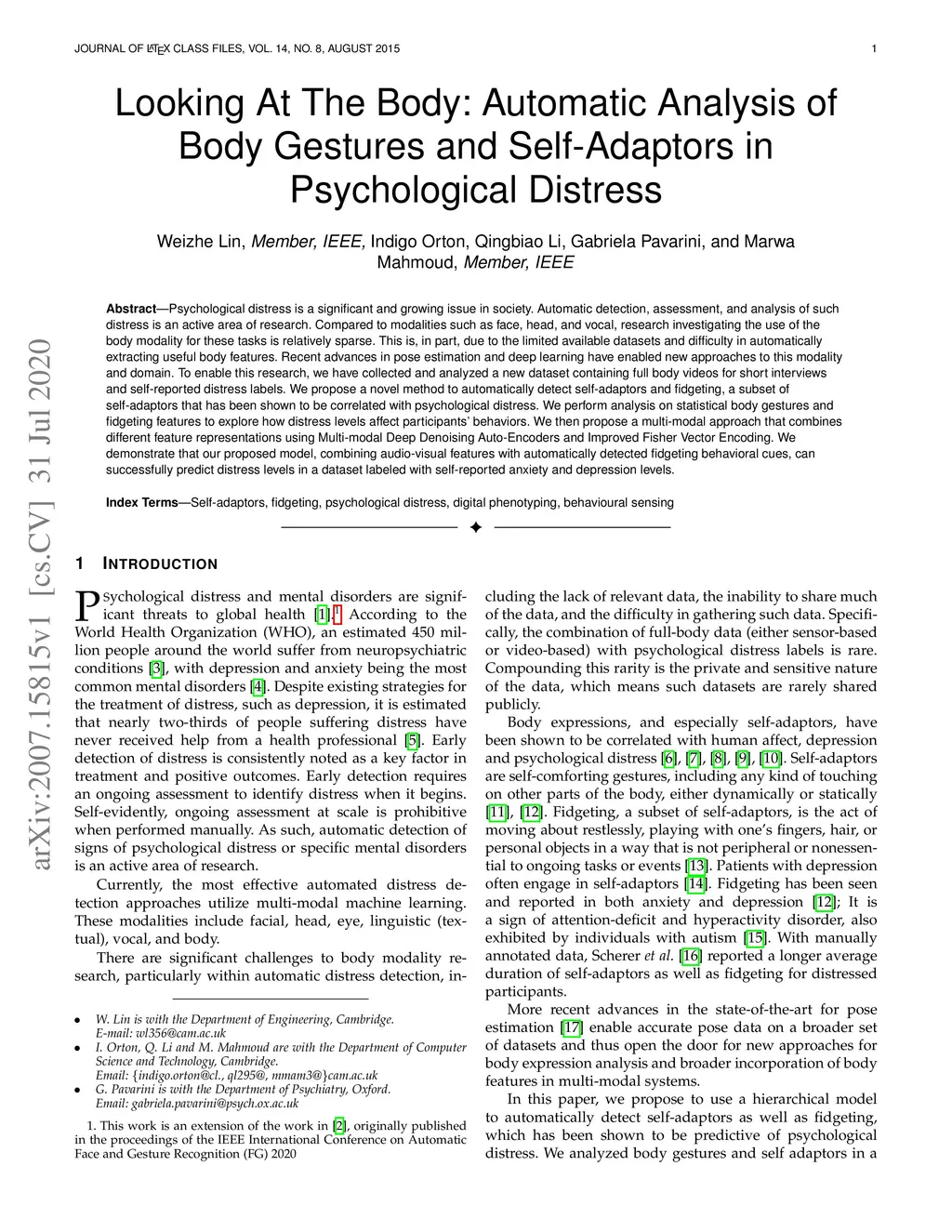 Self-Adaptors in Psychological Distress