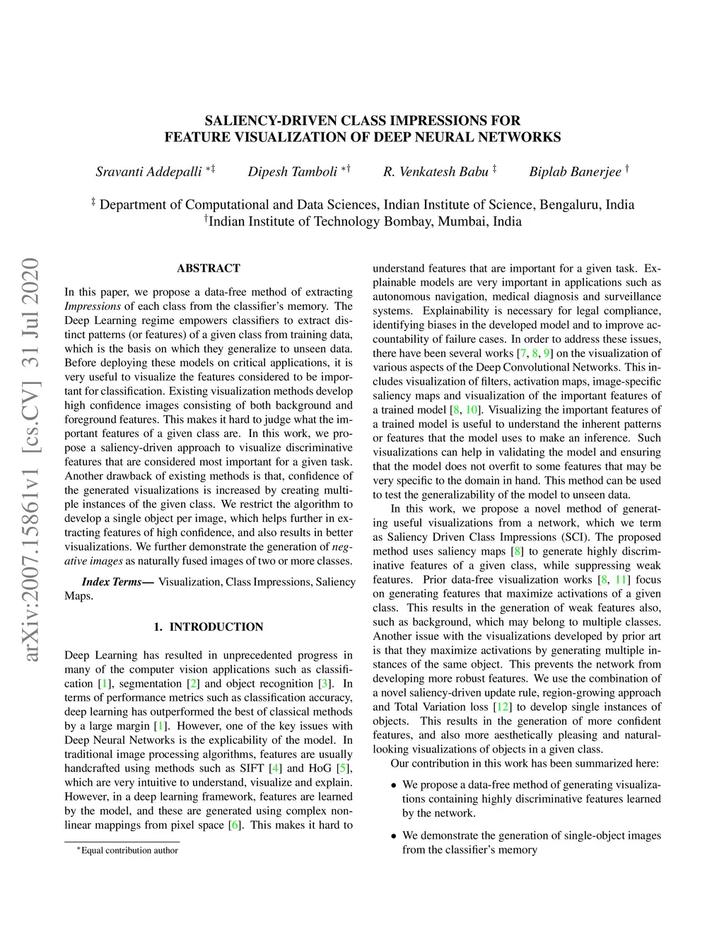 Saliency-driven Class Impressions for Feature Visualization of Deep
