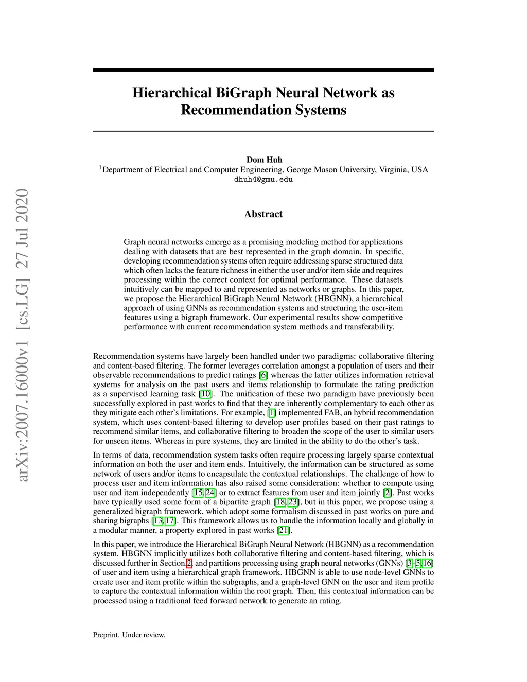 Hierarchical BiGraph Neural Network as Recommendation Systems