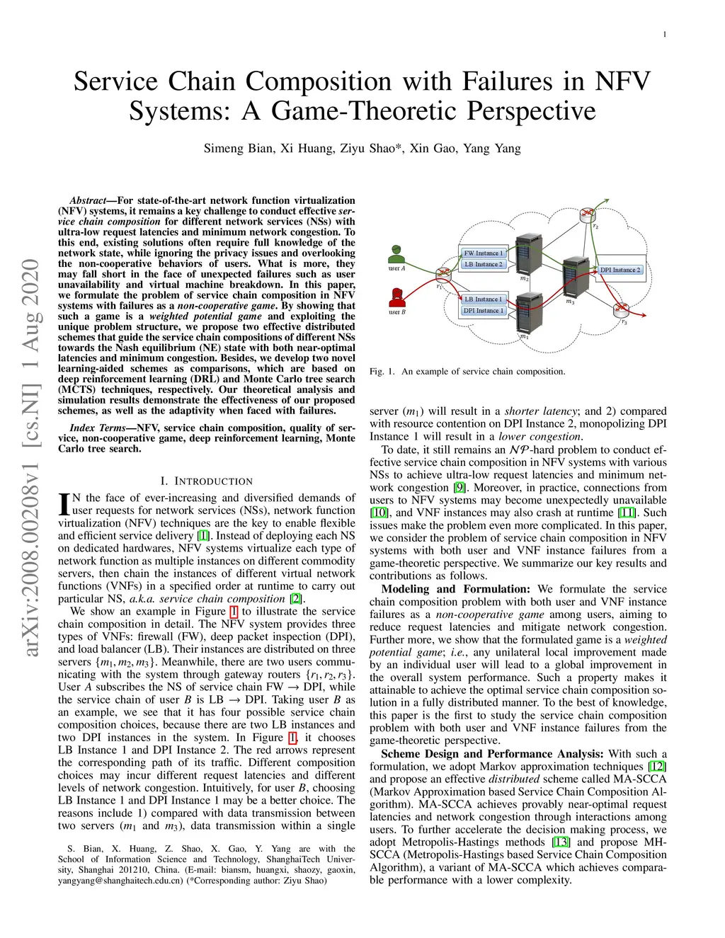 Service Chain Composition with Failures in NFV Systems: A Game-Theoretic