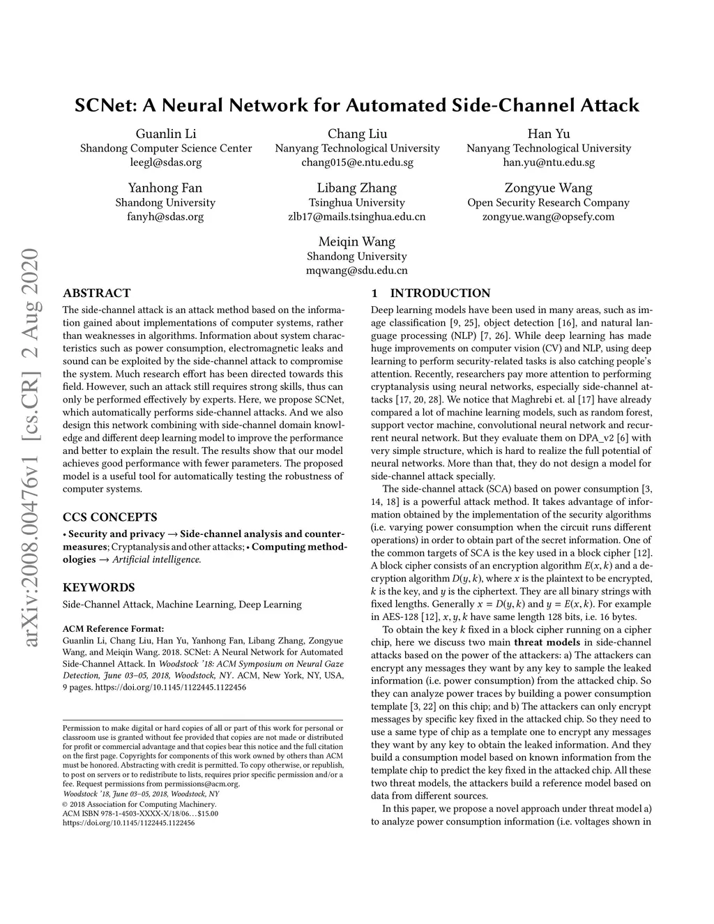 SCNet: A Neural Network for Automated Side-Channel Attack