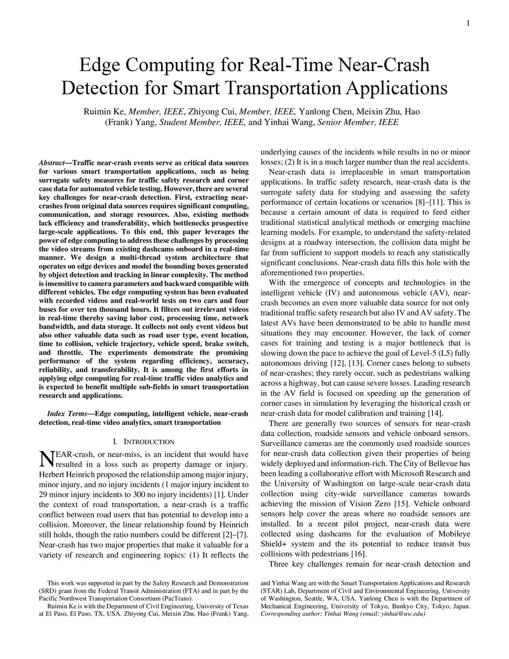 Edge Computing for Real-Time Near-Crash Detection for Smart