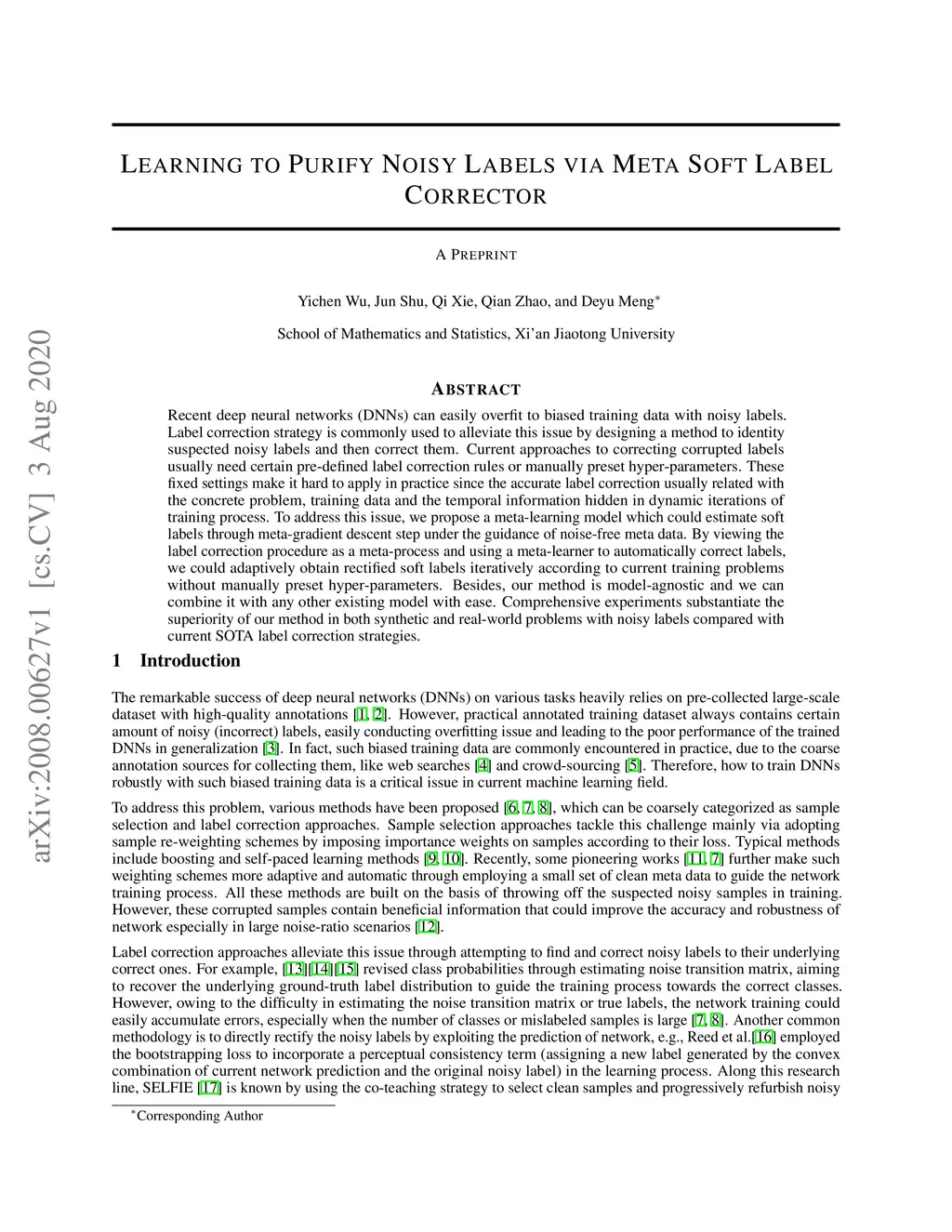 Learning to Purify Noisy Labels via Meta Soft Label Corrector