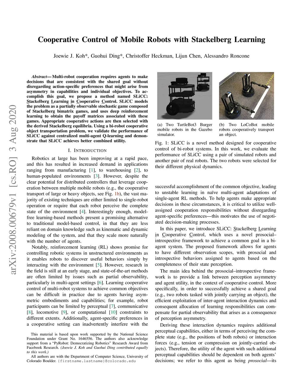 Cooperative Control of Mobile Robots with Stackelberg Learning