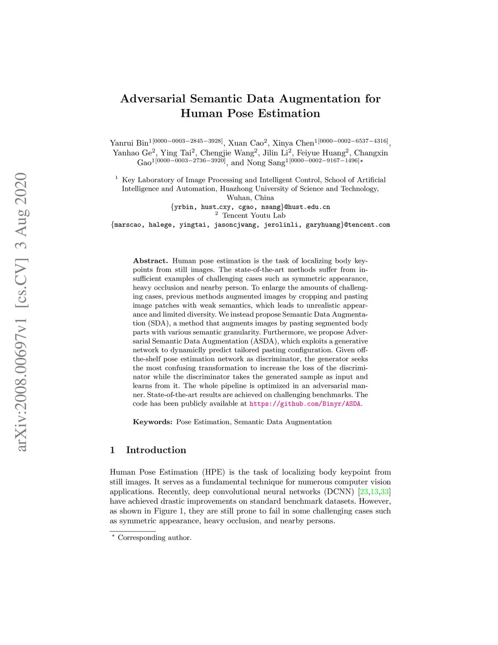 Adversarial Semantic Data Augmentation for Human Pose Estimation