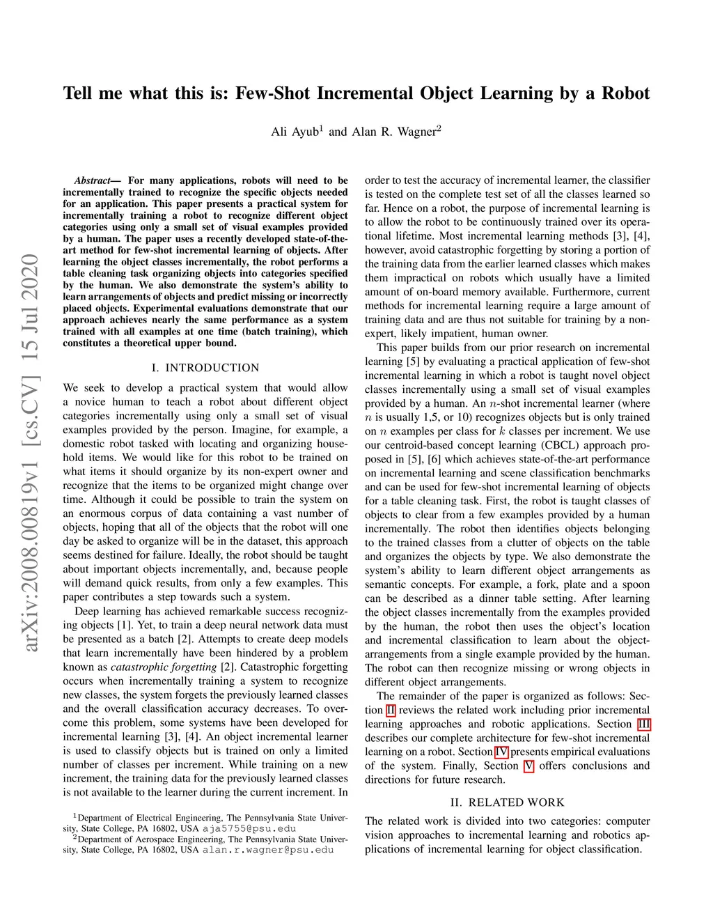 Tell me what this is: Few-Shot Incremental Object Learning by a Robot