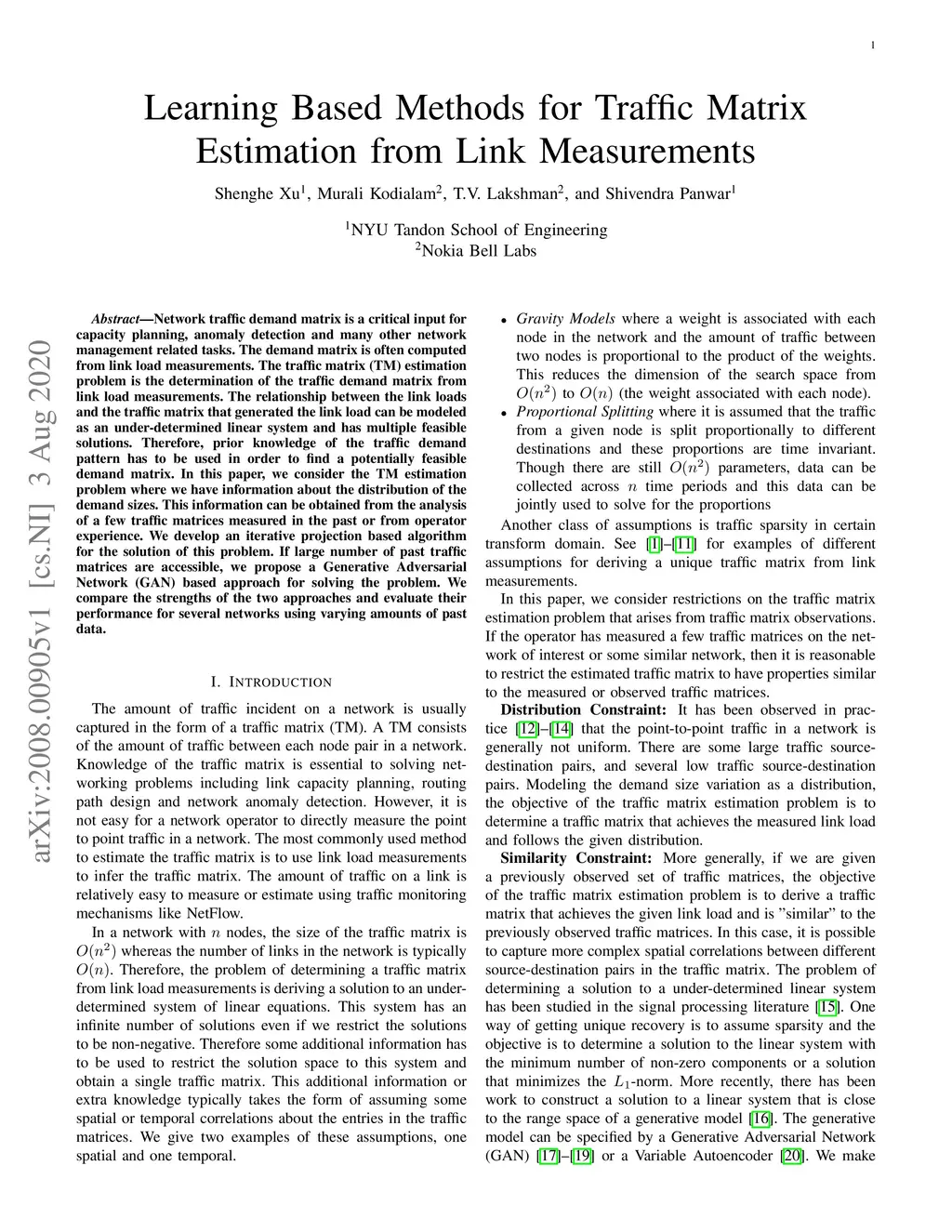 Network traffic demand matrix is a critical input for capacity planning, anomaly detection and many other network management related tasks. The demand matrix is often computed from link load measurements. The traffic matrix (TM) estimation problem is the determination of the traffic demand matrix from link load measurements. The relationship between the link loads and the traffic matrix that generated the link load can be modeled as an under-determined linear system and has multiple feasible solutions. Therefore, prior knowledge of the traffic demand pattern has to be used in order to find a potentially feasible demand matrix. In this paper, we consider the TM estimation problem where we have information about the distribution of the demand sizes. This information can be obtained from the analysis of a few traffic matrices measured in the past or from operator experience. We develop an iterative projection based algorithm for the solution of this problem. If large number of past traffic matrices are accessible, we propose a Generative Adversarial Network (GAN) based approach for solving the problem. We compare the strengths of the two approaches and evaluate their performance for several networks using varying amounts of past data.