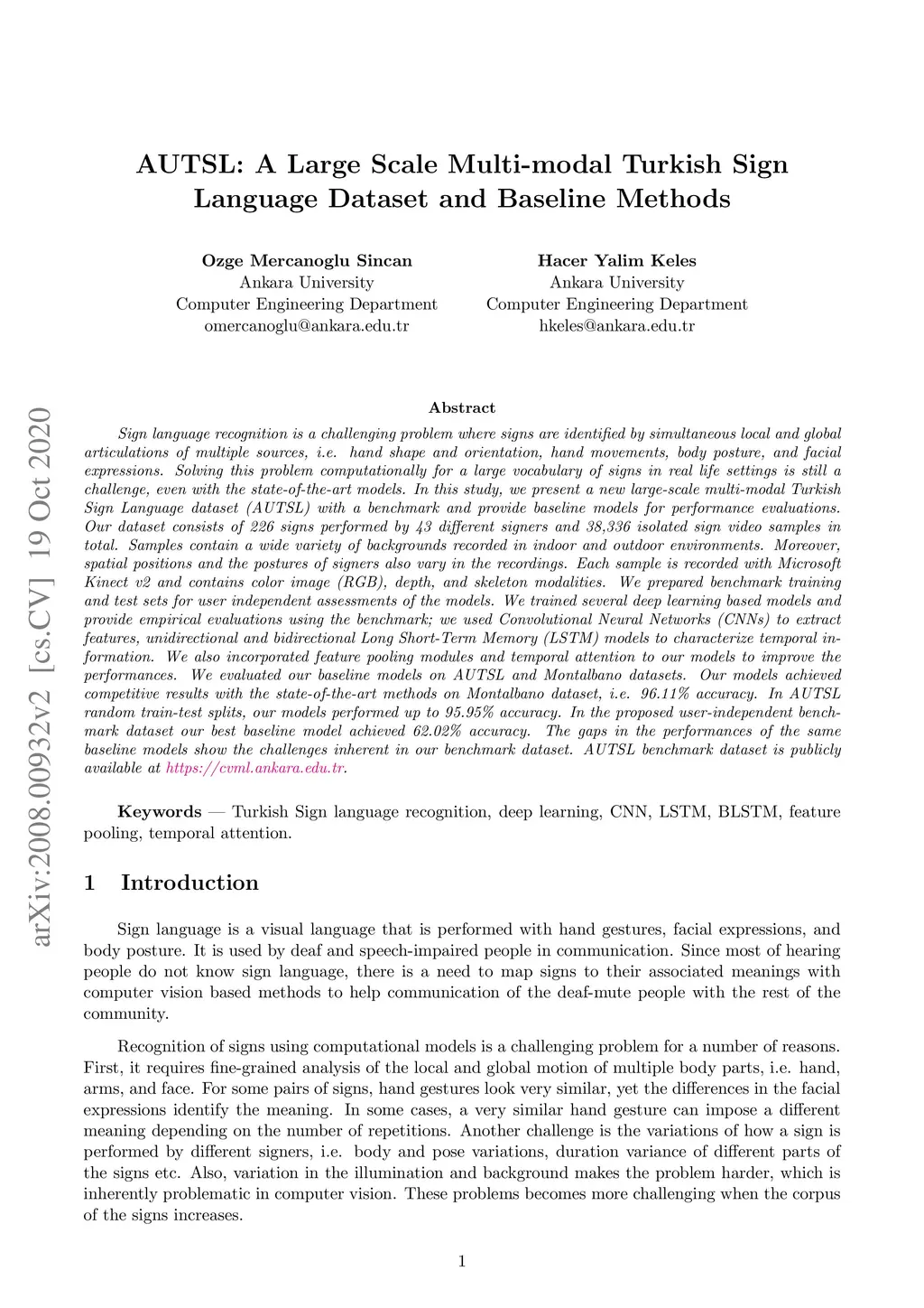 AUTSL: A Large Scale Multi-modal Turkish Sign Language Dataset and