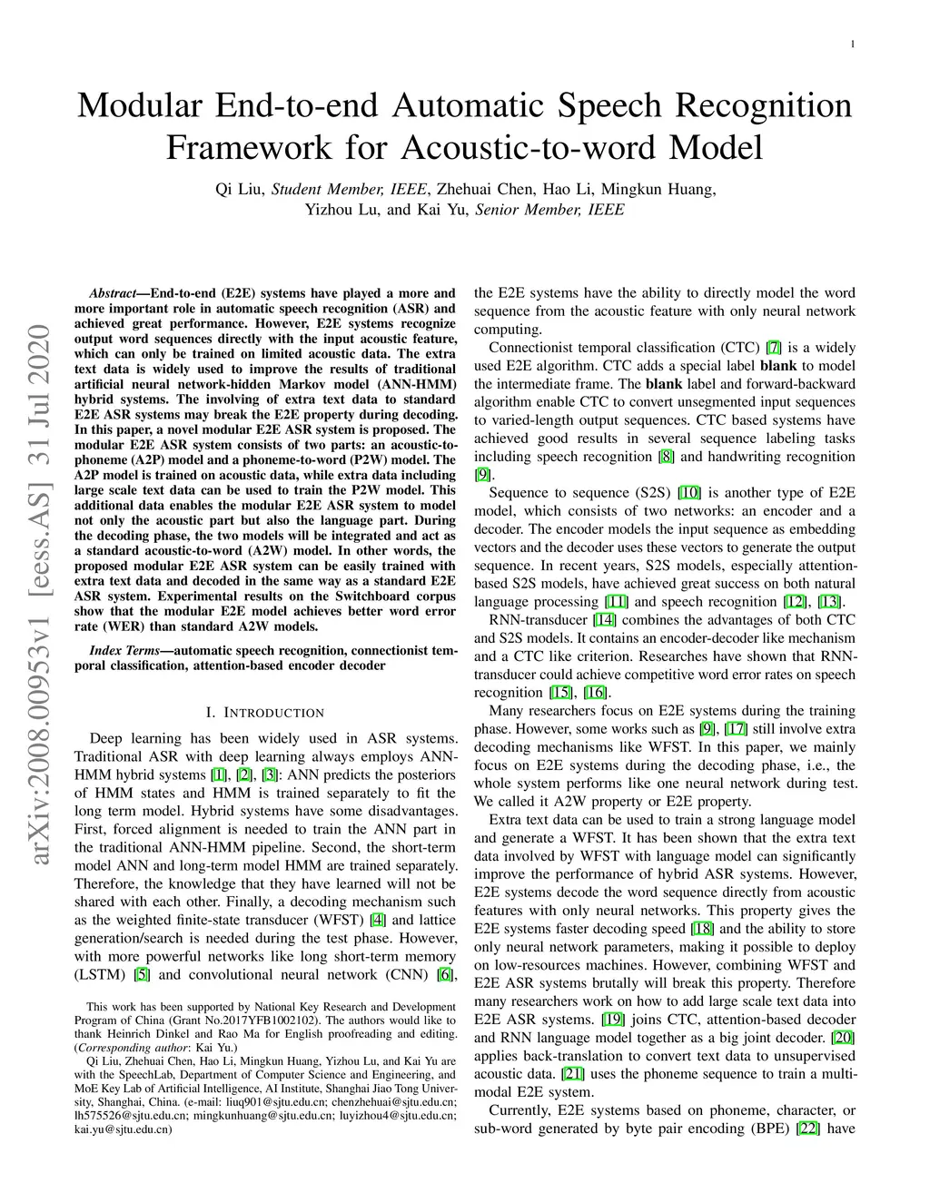 End-to-end (E2E) systems have played a more and more important role in automatic speech recognition (ASR) and achieved great performance. However, E2E systems recognize output word sequences directly with the input acoustic feature, which can only be trained on limited acoustic data. The extra text data is widely used to improve the results of traditional artificial neural network-hidden Markov model (ANN-HMM) hybrid systems. The involving of extra text data to standard E2E ASR systems may break the E2E property during decoding. In this paper, a novel modular E2E ASR system is proposed. The modular E2E ASR system consists of two parts: an acoustic-to-phoneme (A2P) model and a phoneme-to-word (P2W) model. The A2P model is trained on acoustic data, while extra data including large scale text data can be used to train the P2W model. This additional data enables the modular E2E ASR system to model not only the acoustic part but also the language part. During the decoding phase, the two models will be integrated and act as a standard acoustic-to-word (A2W) model. In other words, the proposed modular E2E ASR system can be easily trained with extra text data and decoded in the same way as a standard E2E ASR system. Experimental results on the Switchboard corpus show that the modular E2E model achieves better word error rate (WER) than standard A2W models.