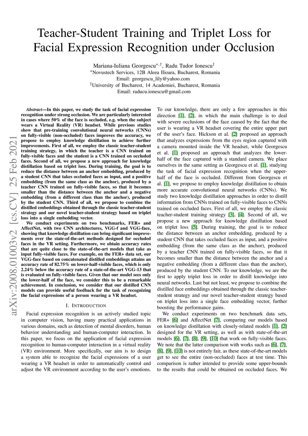 Teacher-Student Training and Triplet Loss for Facial Expression