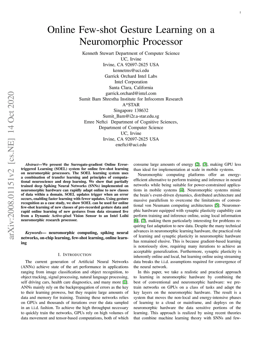 Online Few-shot Gesture Learning on a Neuromorphic Processor