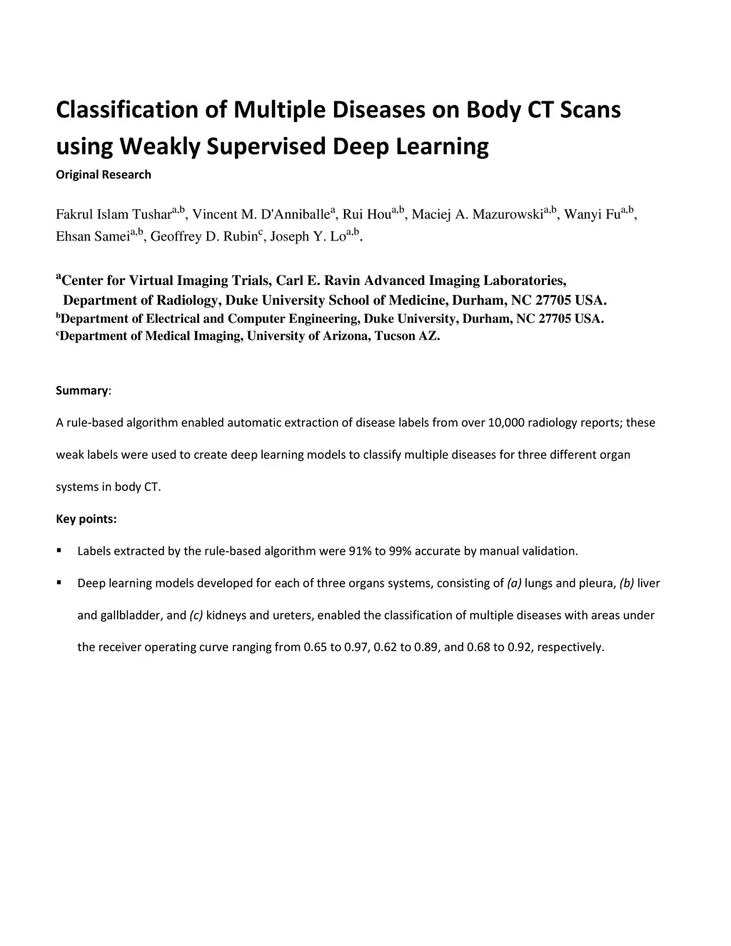 Classification of Multiple Diseases on Body CT Scans using Weakly