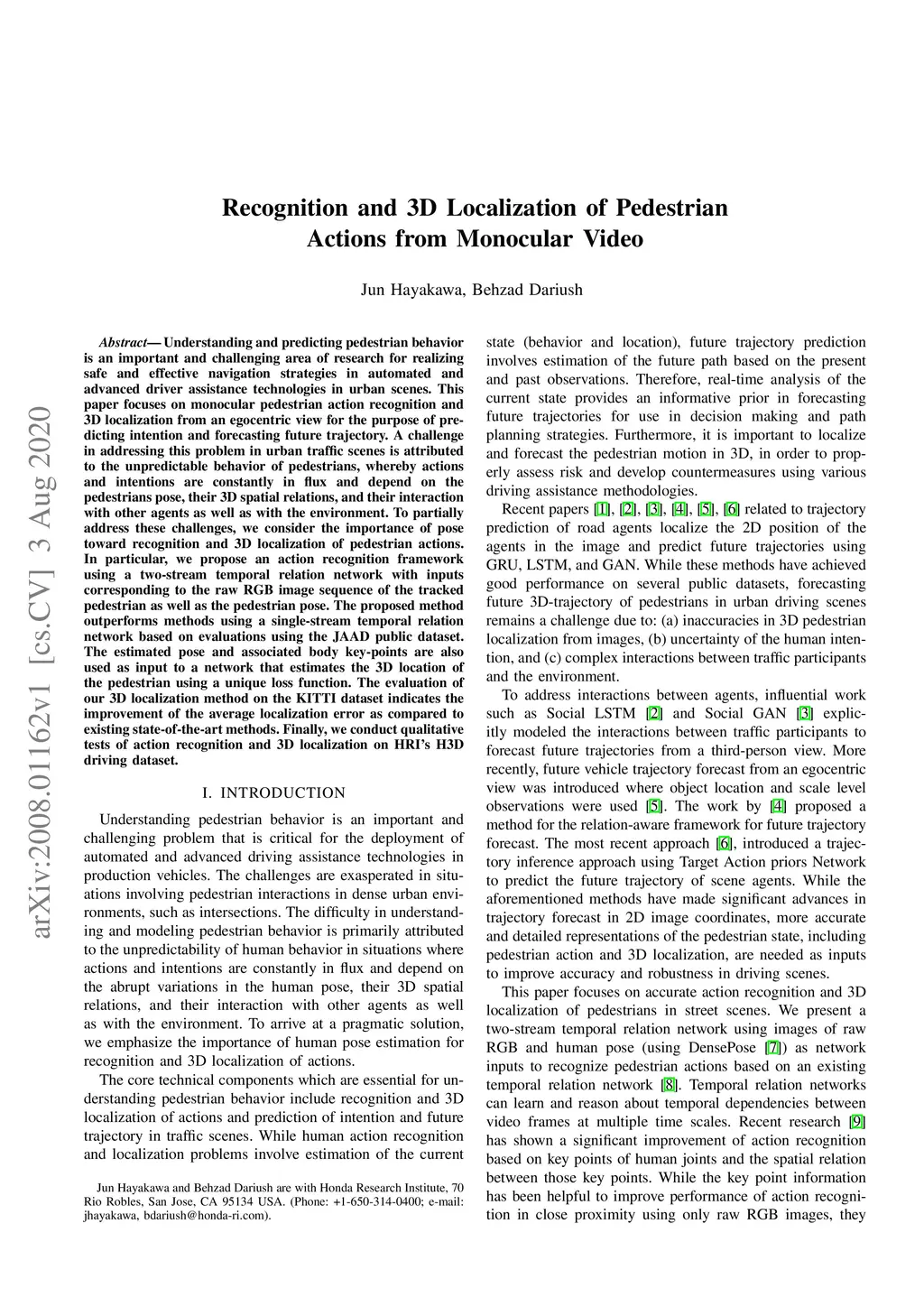 Recognition and 3D Localization of Pedestrian Actions from Monocular
