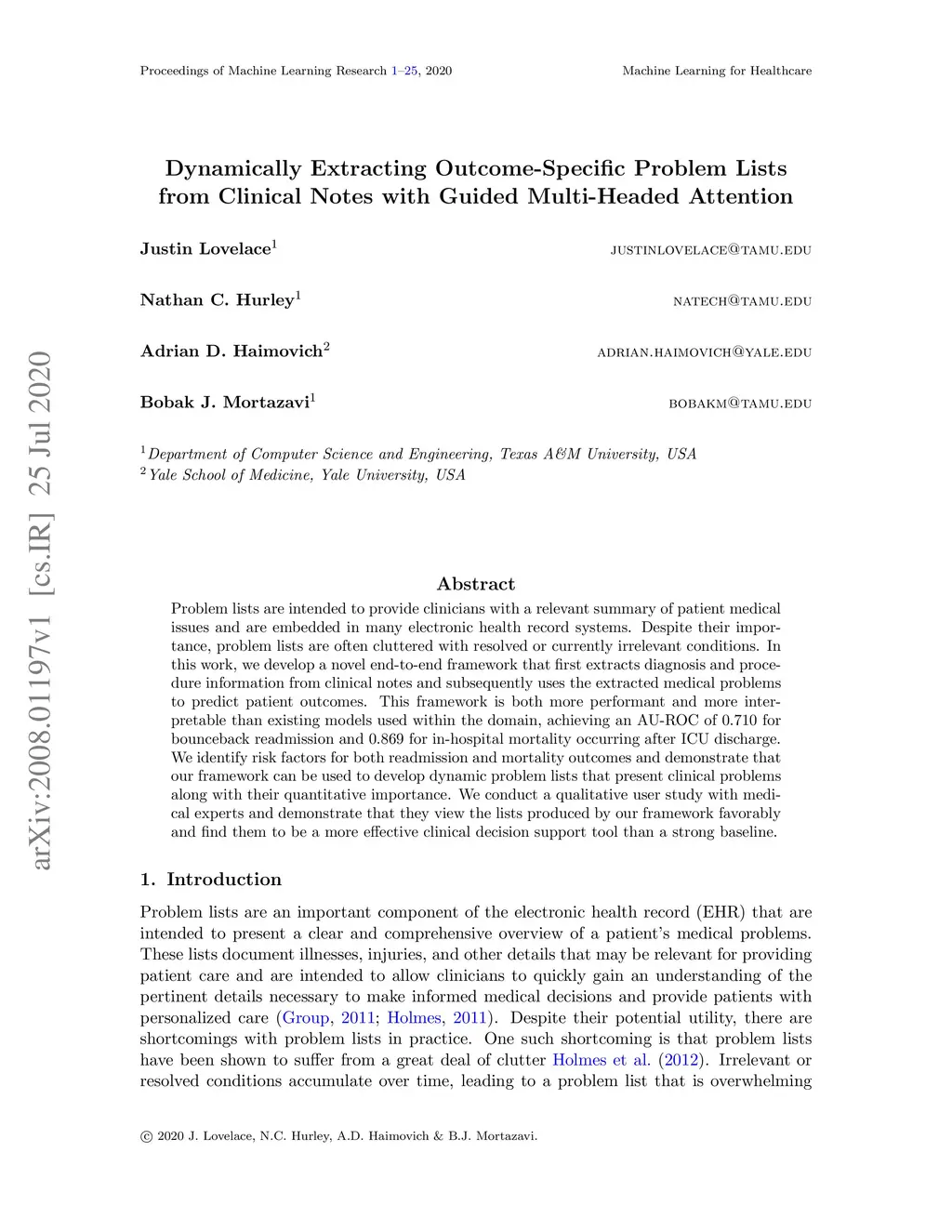 Dynamically Extracting Outcome-Specific Problem Lists from Clinical