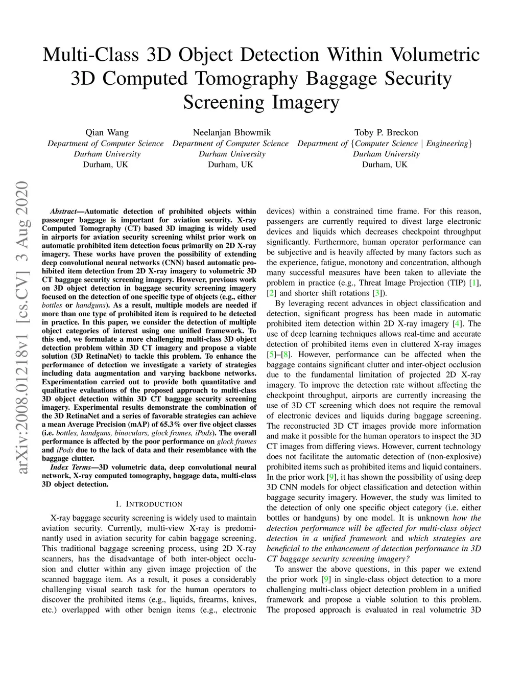 Multi-Class 3D Object Detection Within Volumetric 3D Computed Tomography