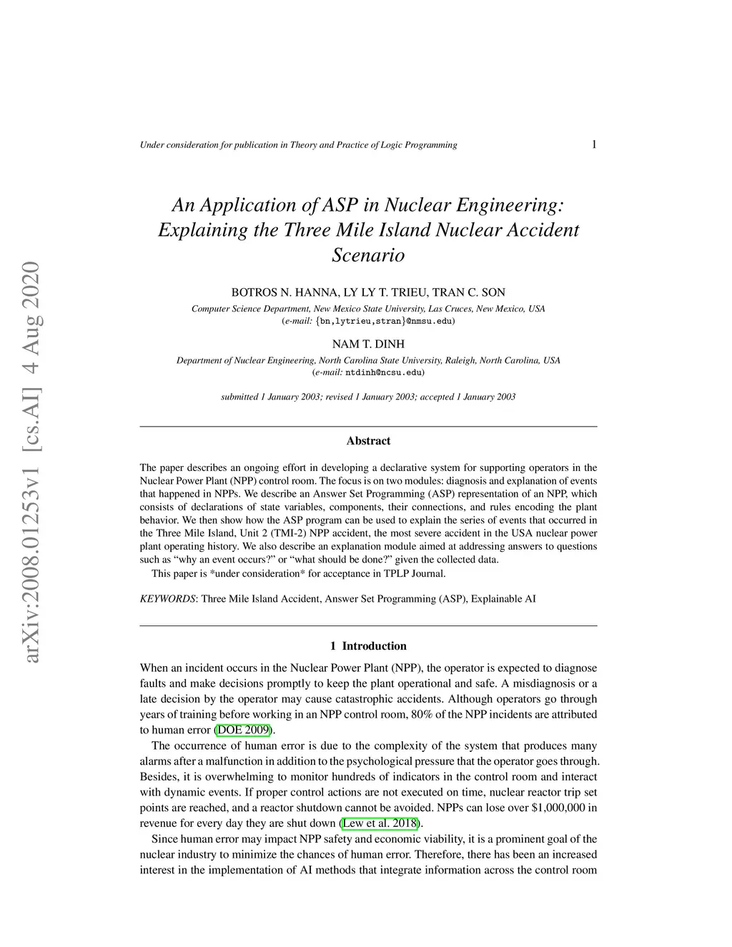 An Application of ASP in Nuclear Engineering: Explaining the Three Mile