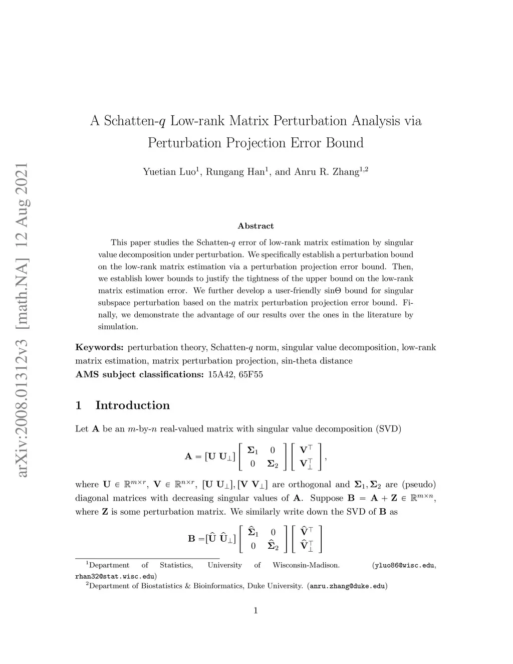 A Schatten- Low-rank Matrix Perturbation Analysis via Perturbation