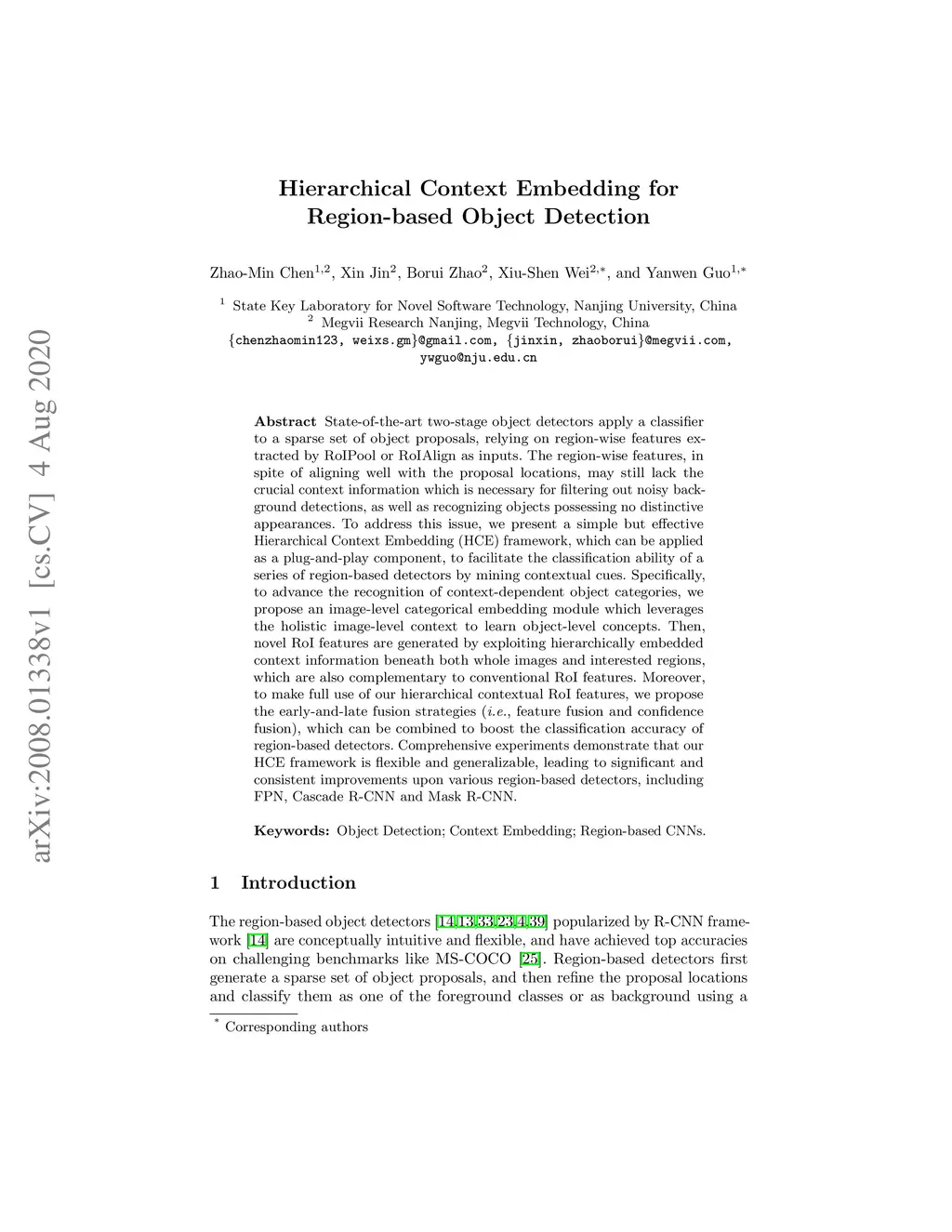 Hierarchical Context Embedding for Region-based Object Detection