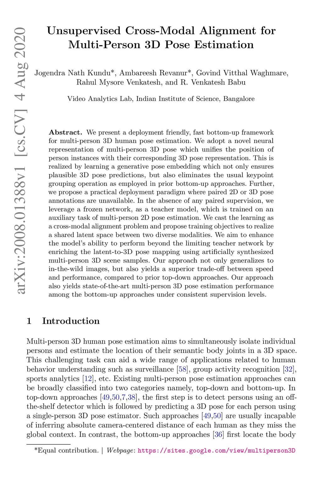Unsupervised Cross-Modal Alignment for Multi-Person 3D Pose Estimation