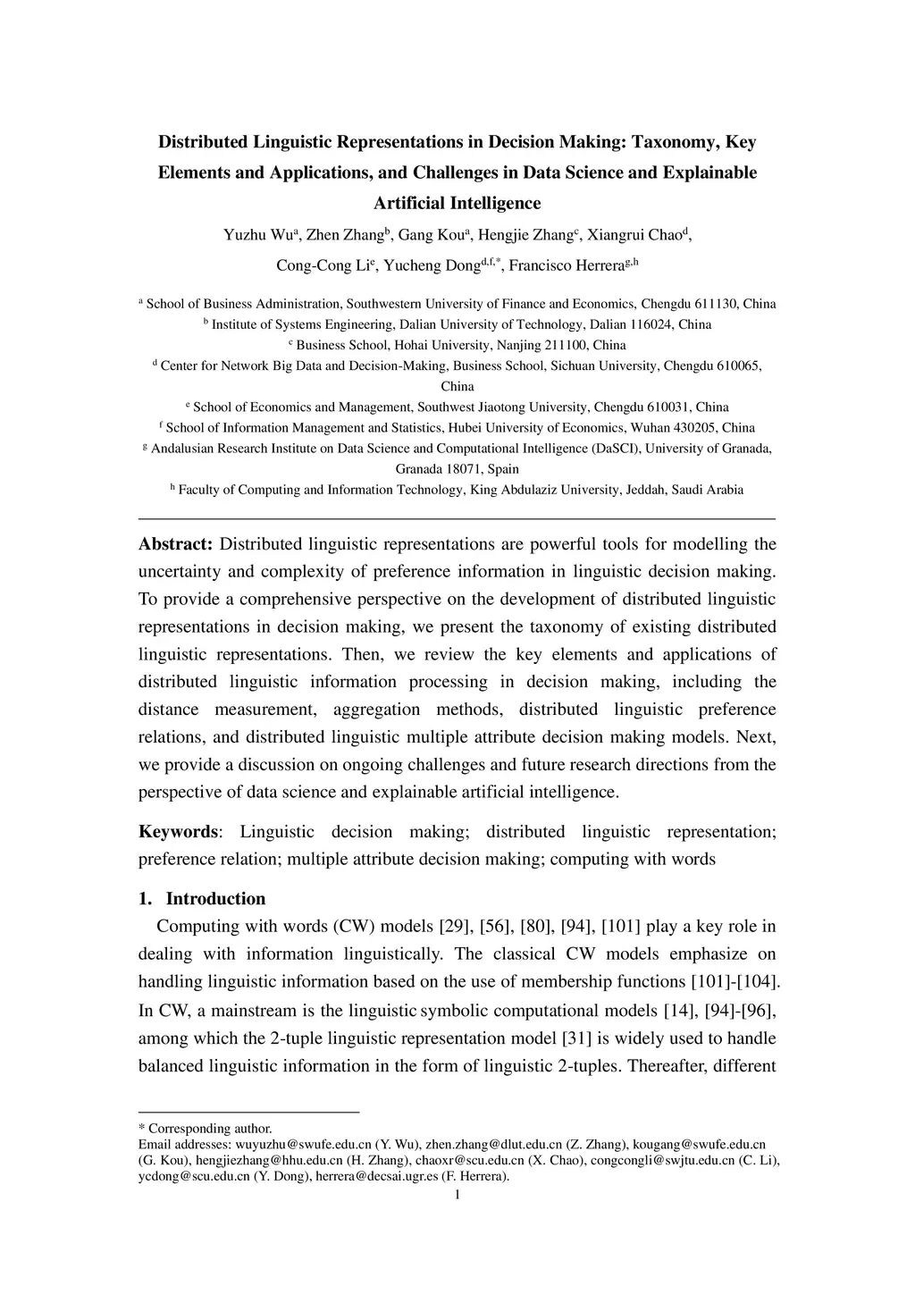 Distributed Linguistic Representations in Decision Making: Taxonomy, Key