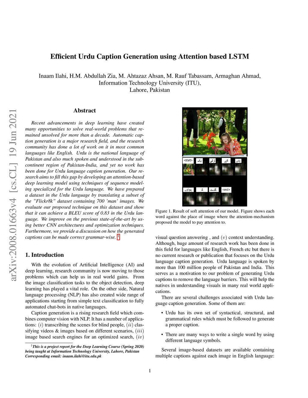 Efficient Urdu Caption Generation using Attention based LSTM