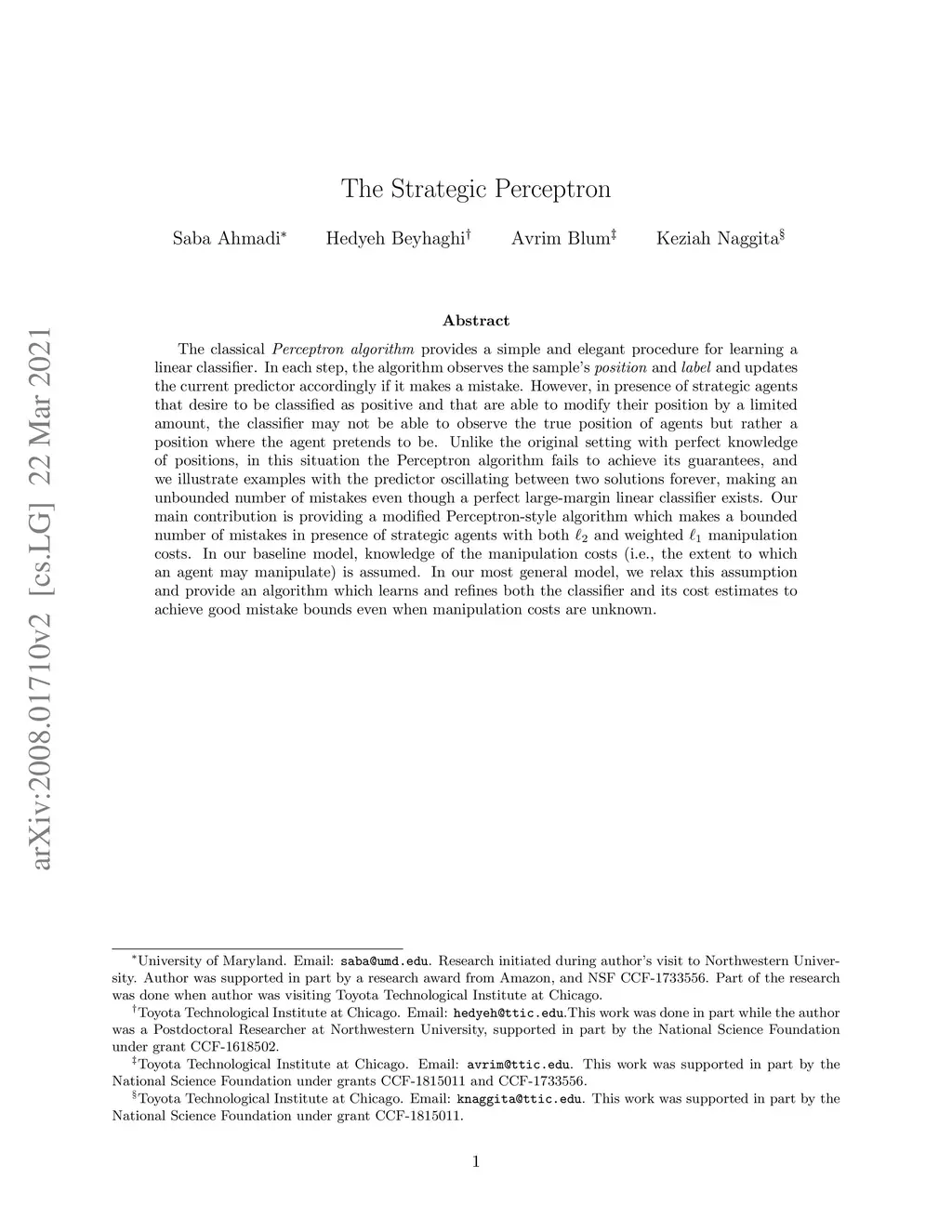 The Strategic Perceptron