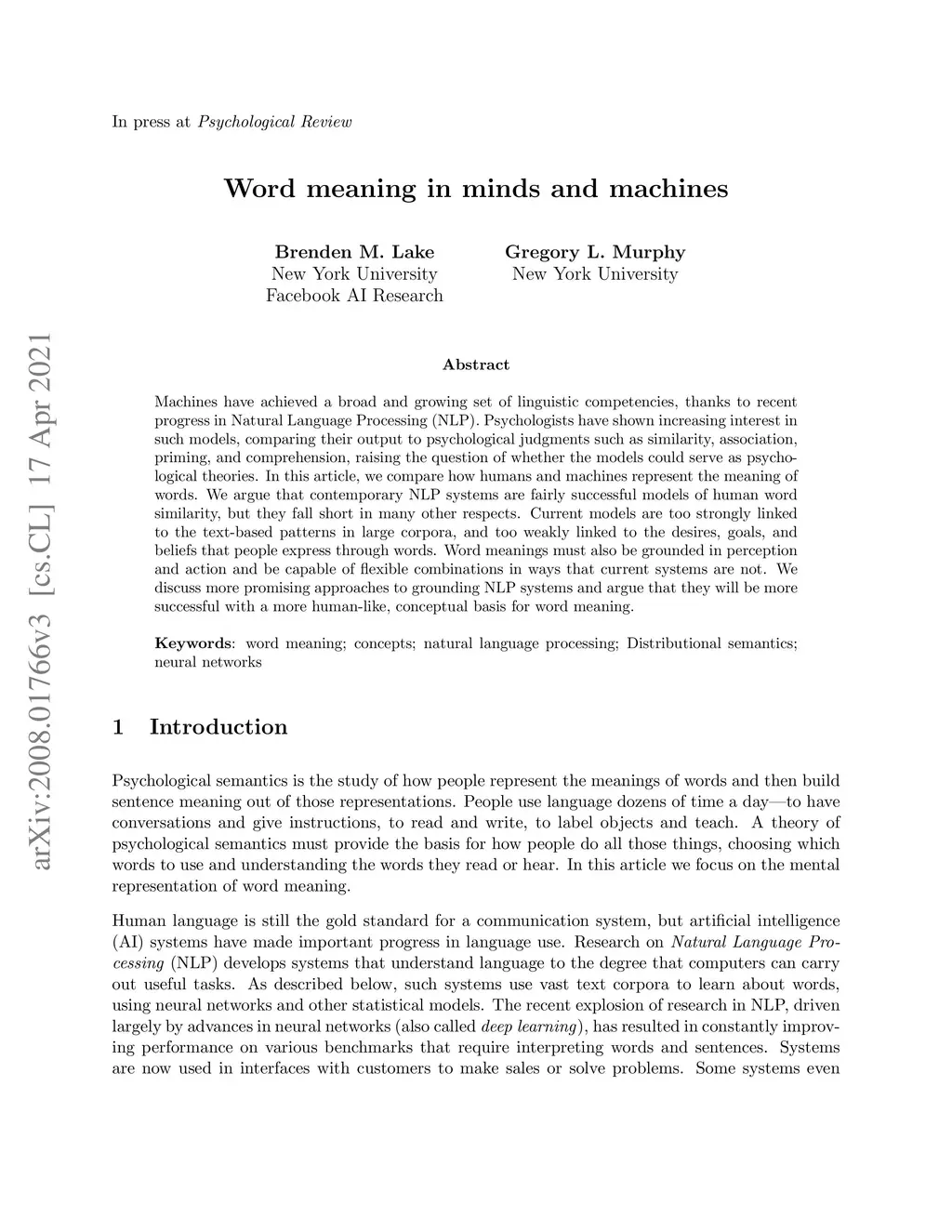 Word meaning in minds and machines