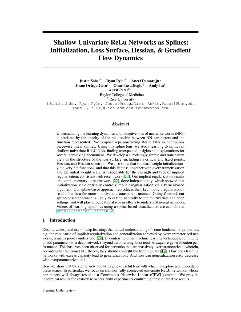 Understanding the learning dynamics and inductive bias of neural networks (NNs) is hindered by the opacity of the relationship between NN parameters and the function represented. We propose reparametrizing ReLU NNs as continuous piecewise linear splines. Using this spline lens, we study learning dynamics in shallow univariate ReLU NNs, finding unexpected insights and explanations for several perplexing phenomena. We develop a surprisingly simple and transparent view of the structure of the loss surface, including its critical and fixed points, Hessian, and Hessian spectrum. We also show that standard weight initializations yield very flat functions, and that this flatness, together with overparametrization and the initial weight scale, is responsible for the strength and type of implicit regularization, consistent with recent work arXiv:1906.05827. Our implicit regularization results are complementary to recent work arXiv:1906.07842, done independently, which showed that initialization scale critically controls implicit regularization via a kernel-based argument. Our spline-based approach reproduces their key implicit regularization results but in a far more intuitive and transparent manner. Going forward, our spline-based approach is likely to extend naturally to the multivariate and deep settings, and will play a foundational role in efforts to understand neural networks. Videos of learning dynamics using a spline-based visualization are available at http://shorturl.at/tFWZ2.
