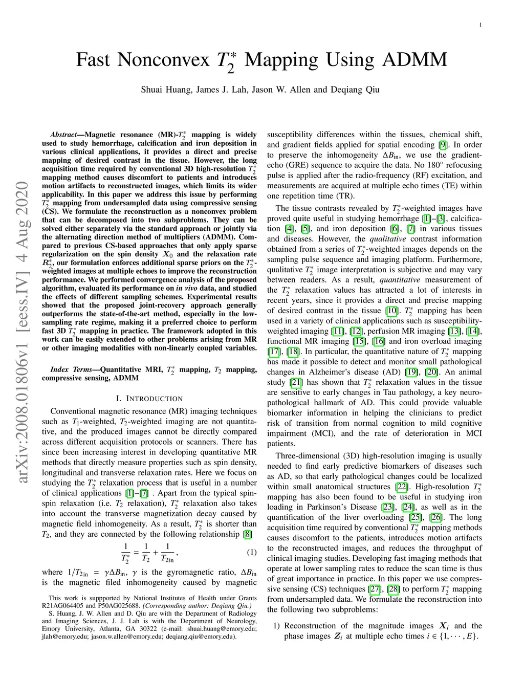 Magnetic resonance (MR)- mapping is widely used to study hemorrhage, calcification and iron deposition in various clinical applications, it provides a direct and precise mapping of desired contrast in the tissue. However, the long acquisition time required by conventional 3D high-resolution mapping method causes discomfort to patients and introduces motion artifacts to reconstructed images, which limits its wider applicability. In this paper we address this issue by performing mapping from undersampled data using compressive sensing (CS). We formulate the reconstruction as a nonconvex problem that can be decomposed into two subproblems. They can be solved either separately via the standard approach or jointly via the alternating direction method of multipliers (ADMM). Compared to previous CS-based approaches that only apply sparse regularization on the spin density and the relaxation rate , our formulation enforces additional sparse priors on the -weighted images at multiple echoes to improve the reconstruction performance. We performed convergence analysis of the proposed algorithm, evaluated its performance on in vivo data, and studied the effects of different sampling schemes. Experimental results showed that the proposed joint-recovery approach generally outperforms the state-of-the-art method, especially in the low-sampling rate regime, making it a preferred choice to perform fast 3D mapping in practice. The framework adopted in this work can be easily extended to other problems arising from MR or other imaging modalities with non-linearly coupled variables.