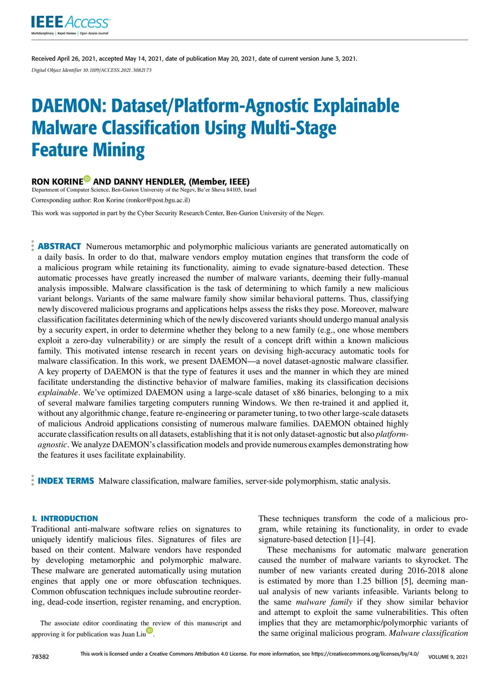DAEMON: Dataset-Agnostic Explainable Malware Classification Using