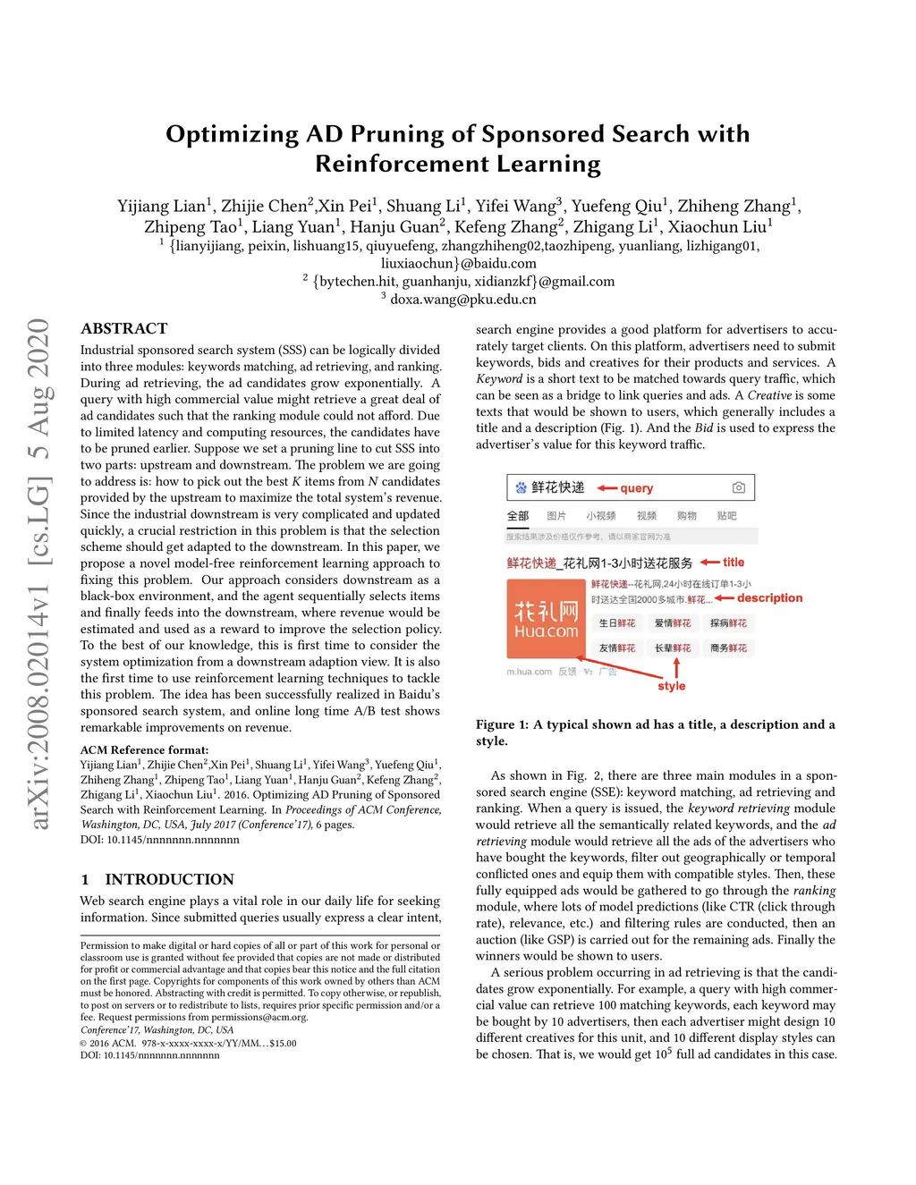 Optimizing AD Pruning of Sponsored Search with Reinforcement Learning